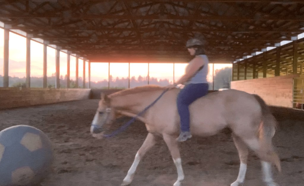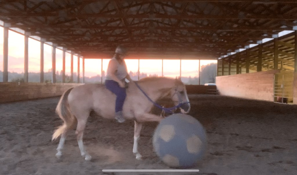 Another long hot day so instead of saddling up and working on the basics, I hauled myself up bareback with a pocketful of treats. One of Flash’s favorite things is treats, so tonight we played soccer and worked on teaching him “push” (with his nose), “kick” (with his legs), and tonight we added “chase”. Soccer is one of his favorite games so it’s always a blast to play with him this way. I also worked on rewarding Cyrus for sticking with us, he’s always so good but he’s tagging along for his first trail ride in months tomorrow and it never hurts to reward the basics.