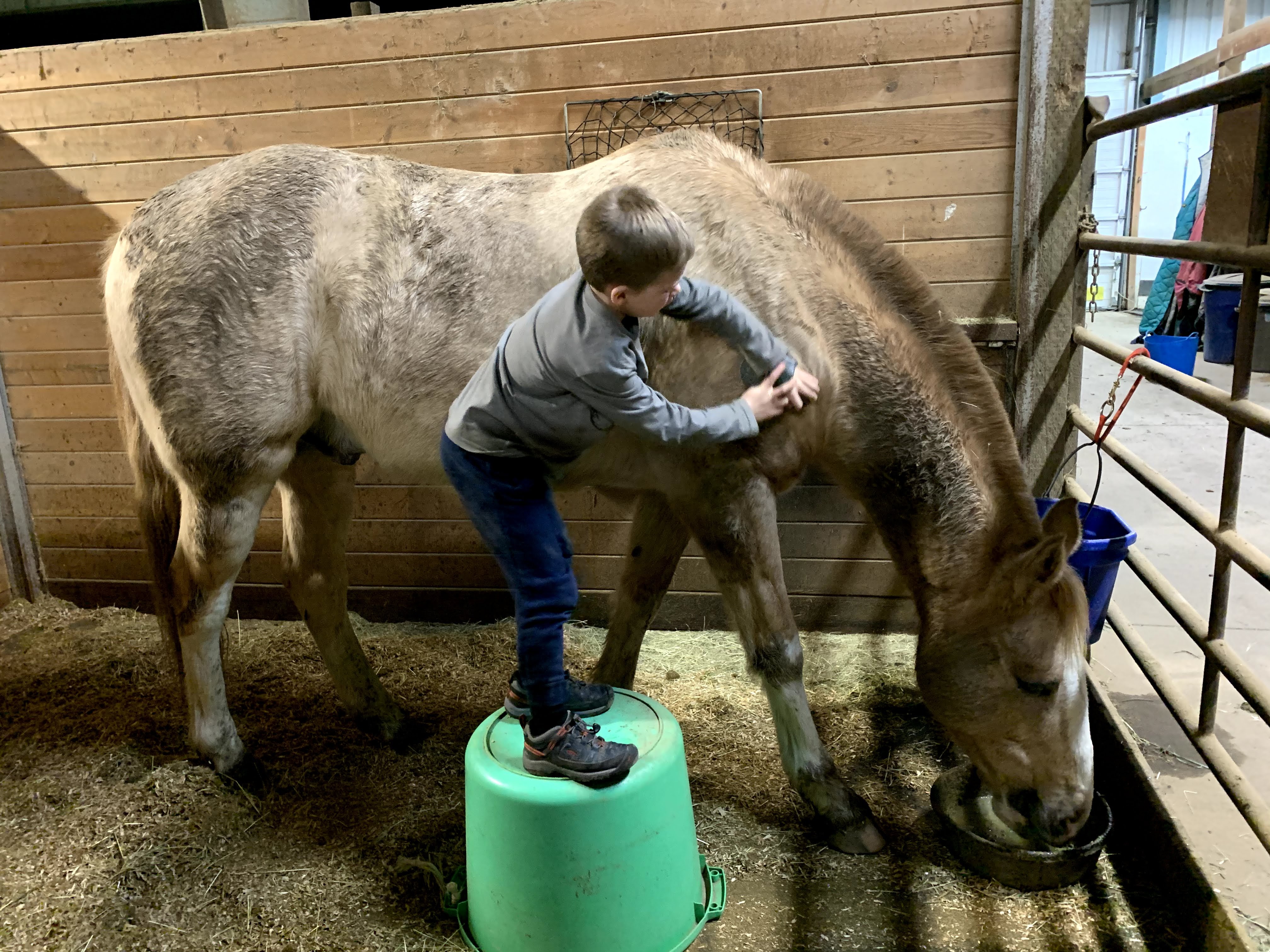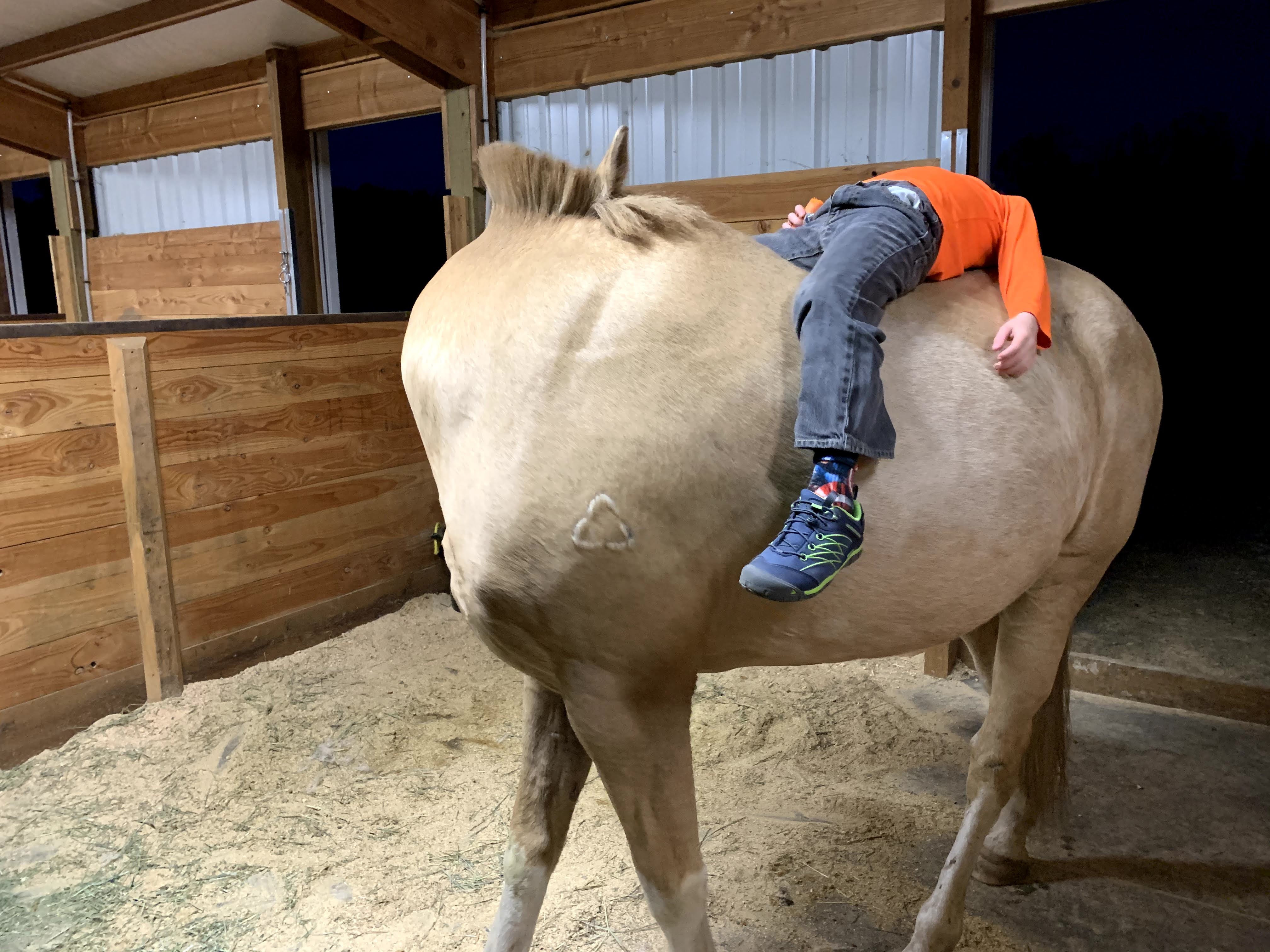 What truly made my heart the fullest was watching Kade and Flash work together…although certain rides brought our Flash’s one real vice, namely that he loved to throw his face around to show his opinion about contact, bitted or bitless, which is hard to deal with when you only weigh 60 pounds. I was so grateful we had Flash when the pandemic hit and soccer and swimming, Kade’s main physical outlets, were cancelled. We still had daily barn visits and a horse that, sufficiently bribed, didn’t fuss about being a large jungle gym.