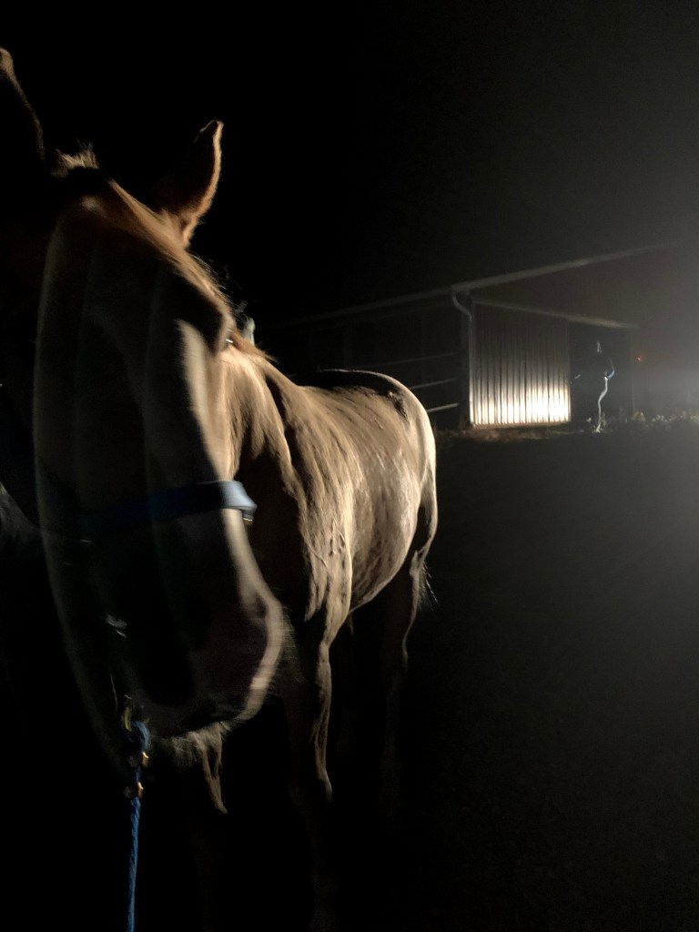 Thank you to everyone’s thoughts and kind words, I can’t express how much they help. Even though I cry when I read them, it truly helps knowing I’m part of a larger tribe that completely understands. I’ve lost my friend, and I’m at the stage where I’m not sure I want to “get over” loosing him. I want Flash, not the next horse, and I can recognize that stage for what it is. I finally admitted to myself, really for the first time, that I was a good horse owner. Whenever someone complimented me on my care or how well Flash looked, my knee jerk answer was “Well, I have to get better at this” or “I’m really working on this aspect”, but after last nights painful but weirdly helpful visit to the barn, I can finally just say it out loud. I was a good horse owner, and Flash reflected that both in his manner and his stunning beauty and growing fitness. The two things I’m proudest of are finally figuring out a good way to control his itchiness (SmartPak ItchEase, worth every penny for him!) and how he loaded right up without hesitation that dark, scary, ash filled night we had to evacuate him during the wildfires.
