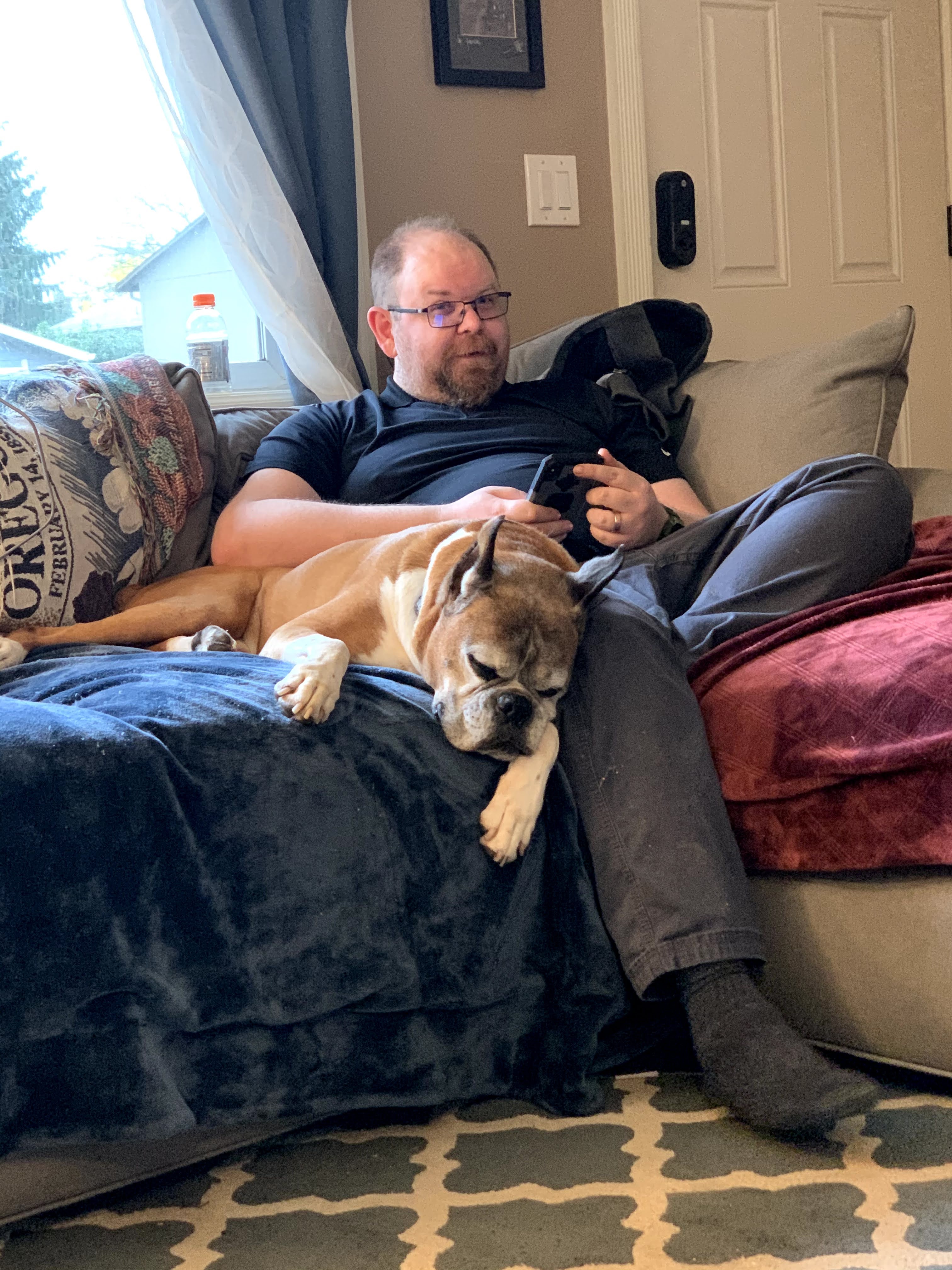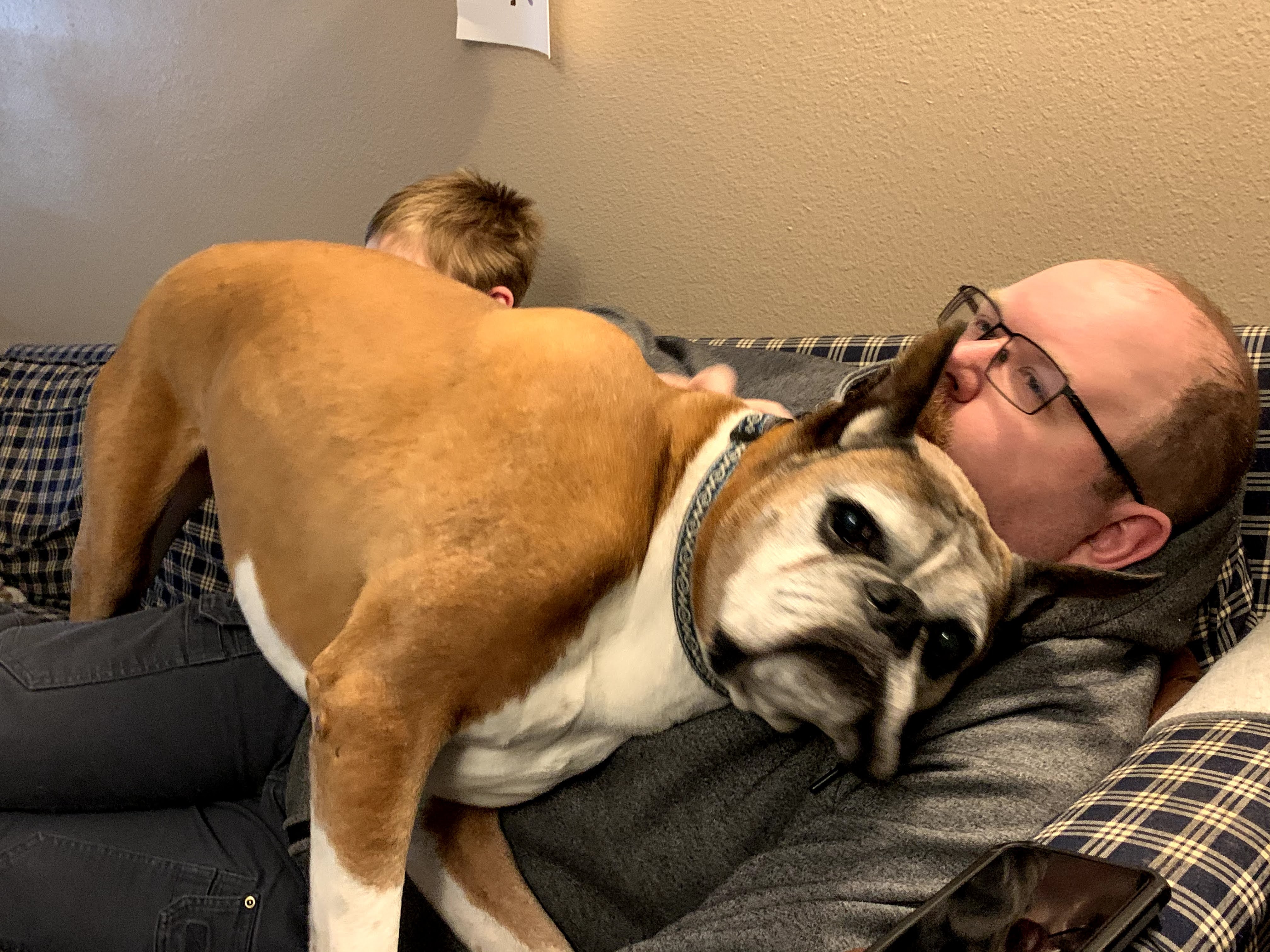 He can’t get out of bed, the pain meds he’s on make him super duper loopy and out of it, and he’s not interested in anything. When he does try to get up, he mostly flops until I help up and about. I’m spending my days in what for me is a high state of anxiety, checking him constantly, trying to figure out what he needs and what’s best for him and just hoping we can get him through this. I’m terrified the vets might be wrong and I’ll have to say goodbye to our fourth family member this year….but I’m most terrified for how this will affect my husband and son. Cyrus is their dog as much as mine, he’s the best damn dog our family could have and to see him like this….we’re all at that stretching point where we really have to ask ourselves how much more we can take. Intellectually we know we can do more, of course, that’s life, but why does it have to be so damn hard?