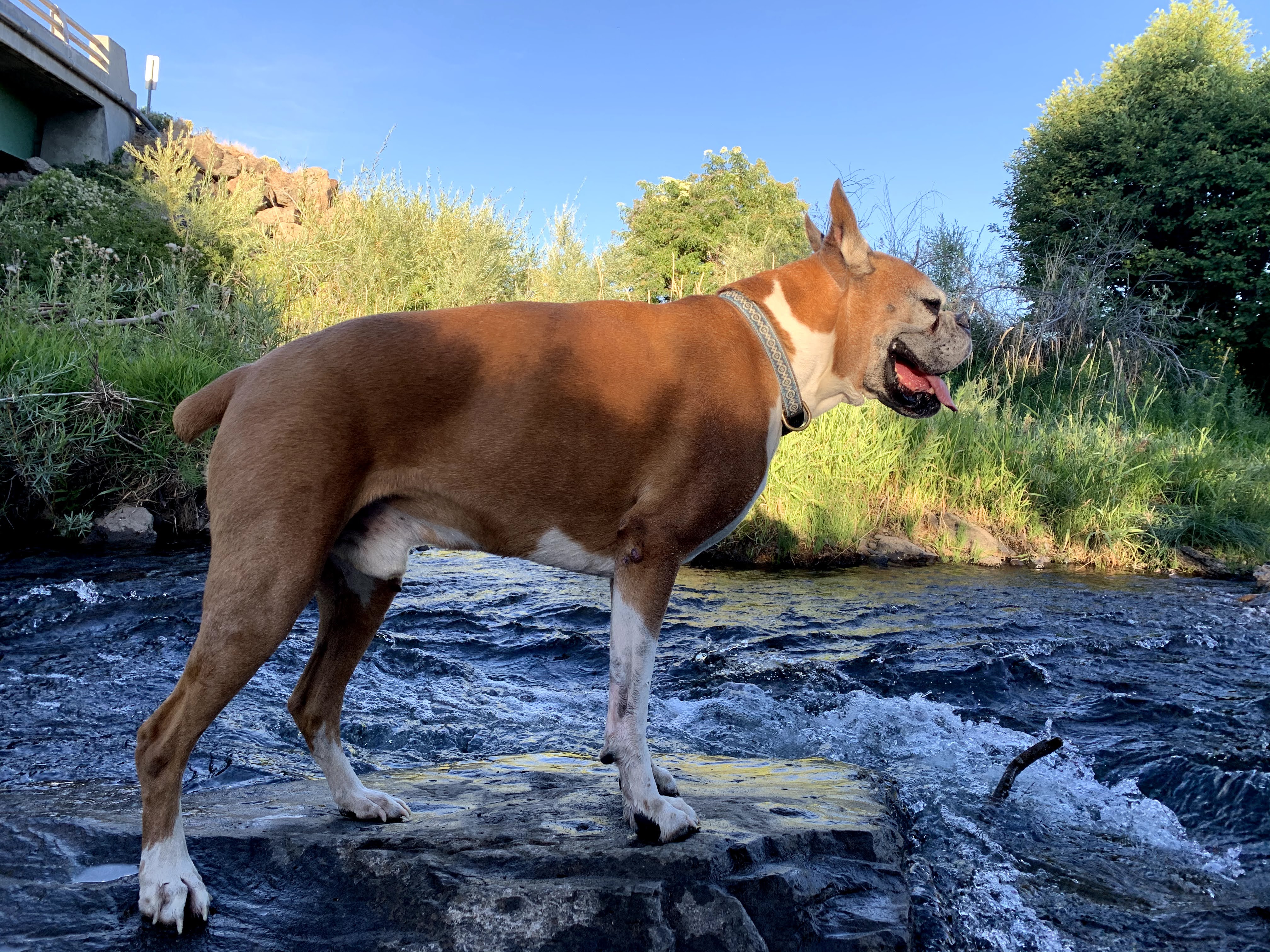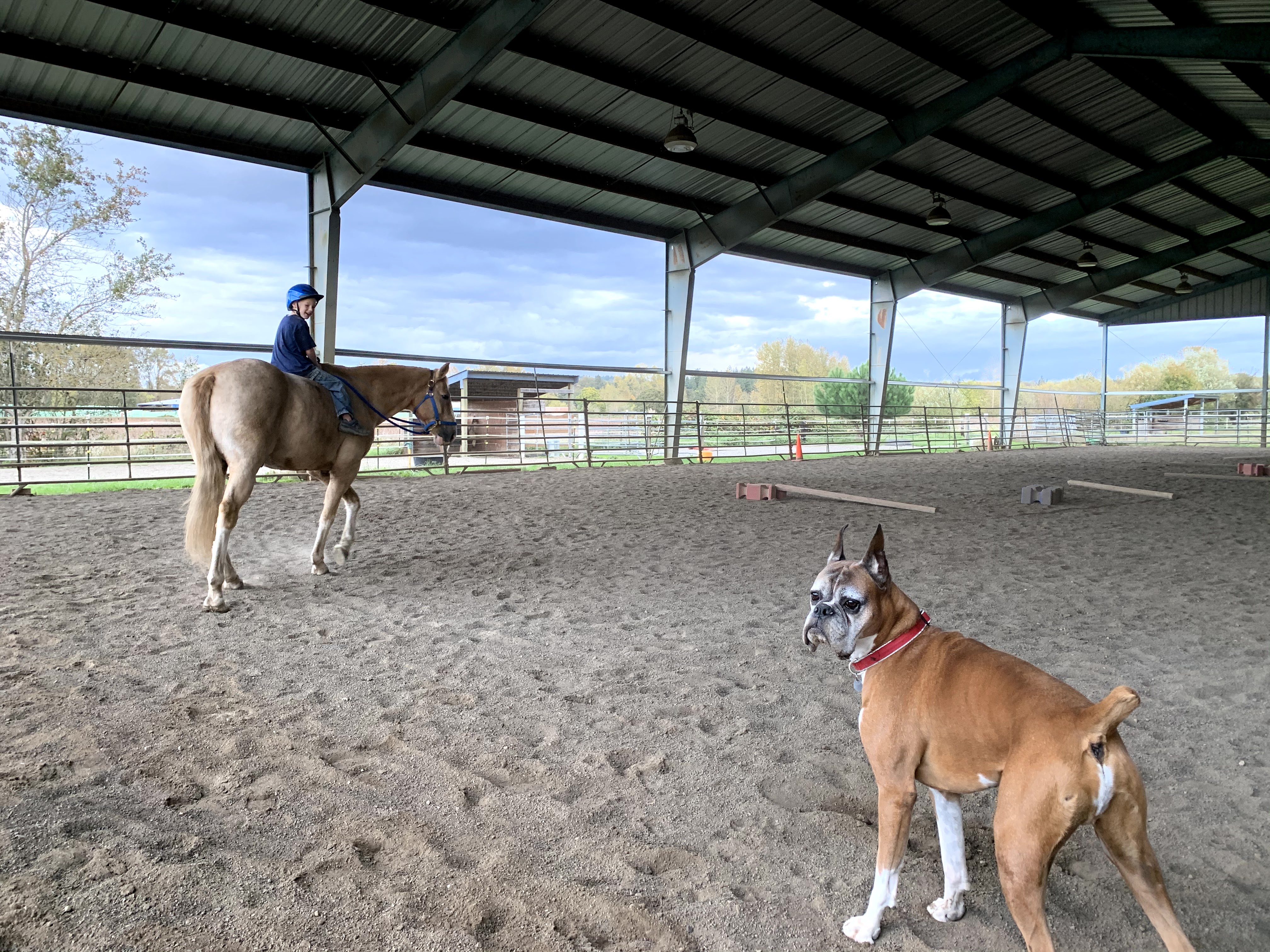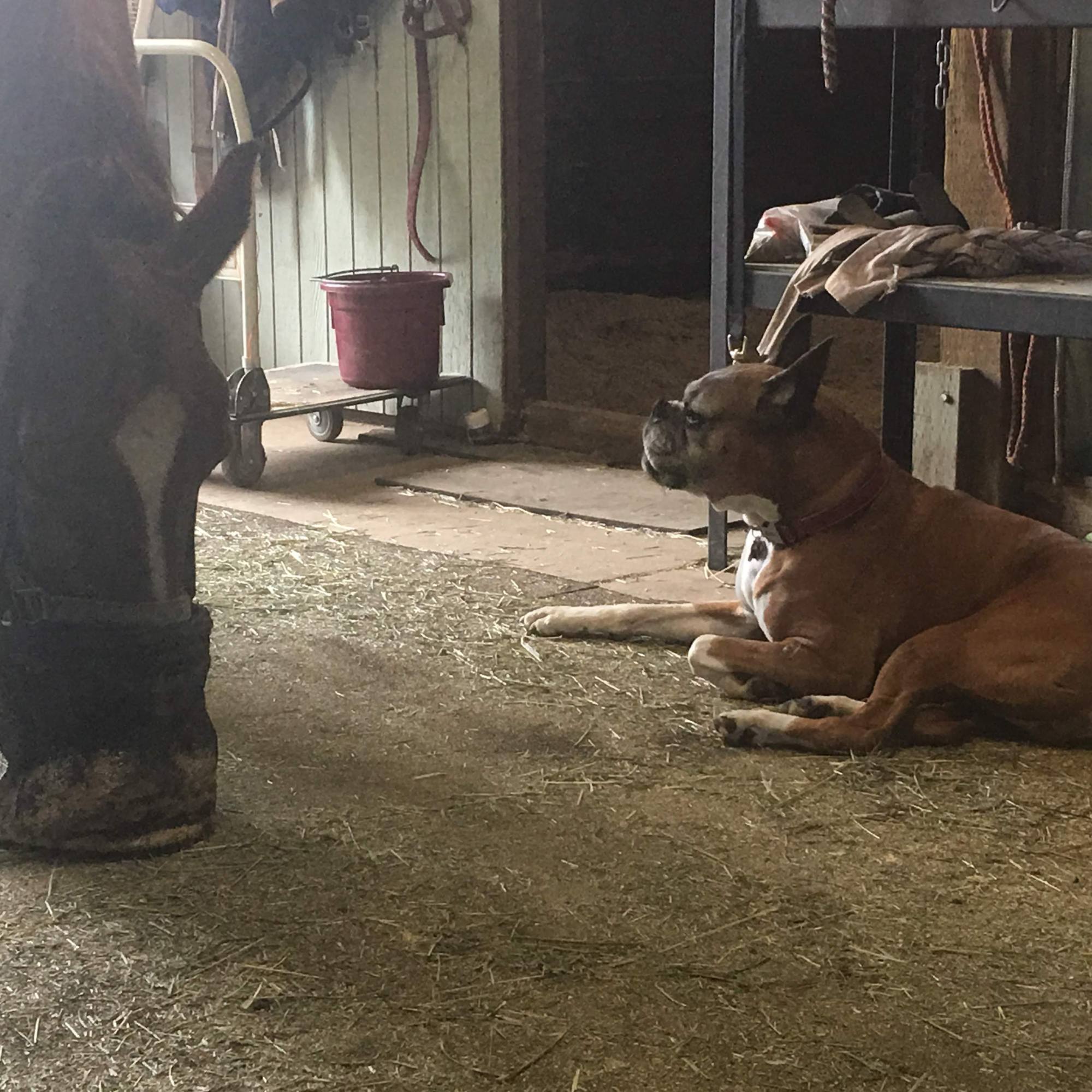 He was so solid around the many horses I’ve been able to ride over the years, always following right on their heels. Even when I had lessons, he’d still be walking along behind me, laps and circles and poles. He was welcomed at pretty much every barn, and didn’t get upset when one of my trainer’s puppies just decided to constantly bark at him for no clear reason. He was forever frenemies with my best friend’s dog and yet so careful with every other dog he ever met. Meeting other boxers was his favorite, bringing out the playful zoomies.