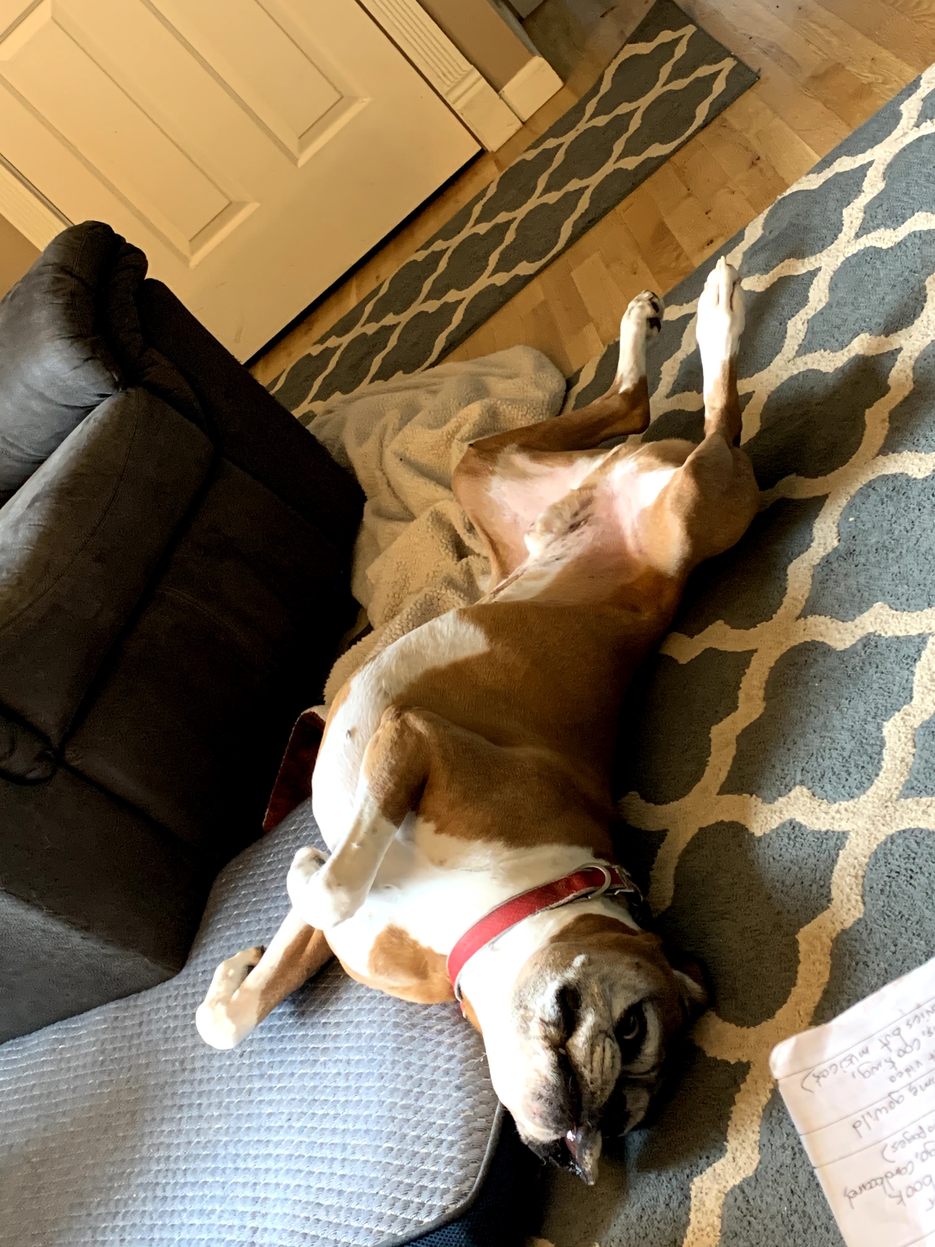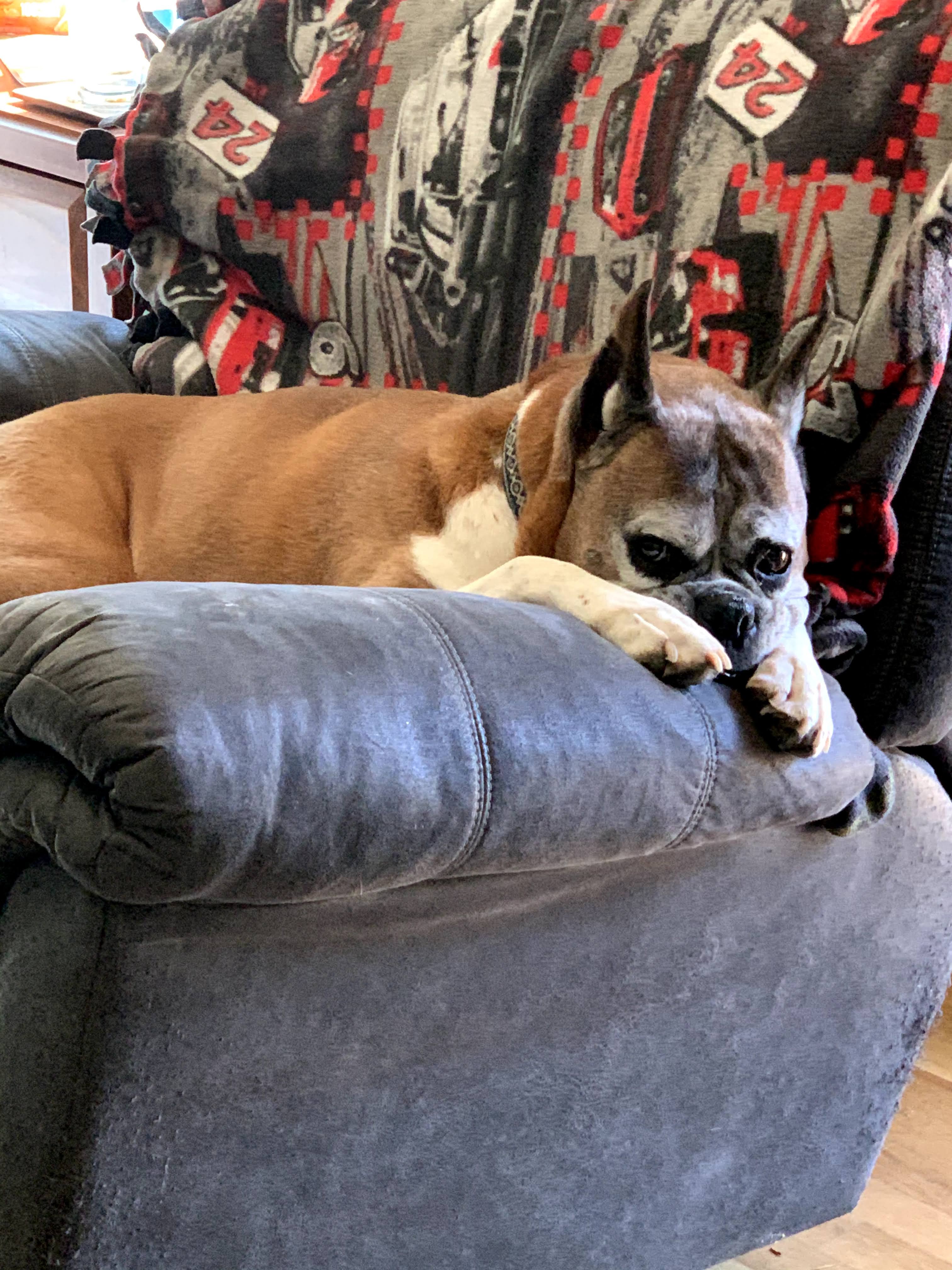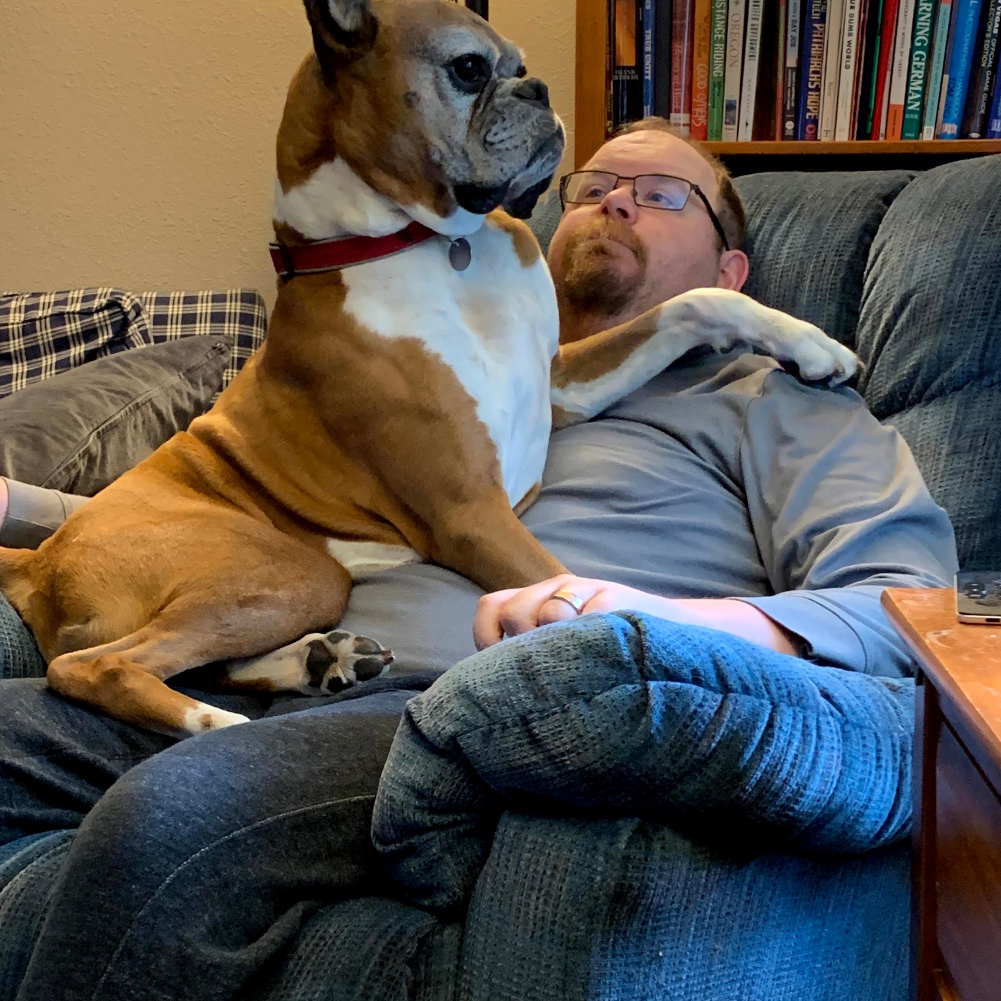 There was no one better at cuddles, even though sometimes he thought that meant “completely cover the human head to toe”. He almost never barked, unless you came in through the “wrong door”, aka the garage door. He spread his love and his dinner quite widely, which I could never determine was better or worse to deal with than a fuzzy breed like my mom’s Huskies. He was Tom’s most loyal BBQ taste tester, though his tips for improving the recipes weren’t very coherent. His farts, especially post Tom’s ribs, would chase me from my office. His snoring was glorious and epic, and watching him chase squirrels in his sleep was a time honored past time.