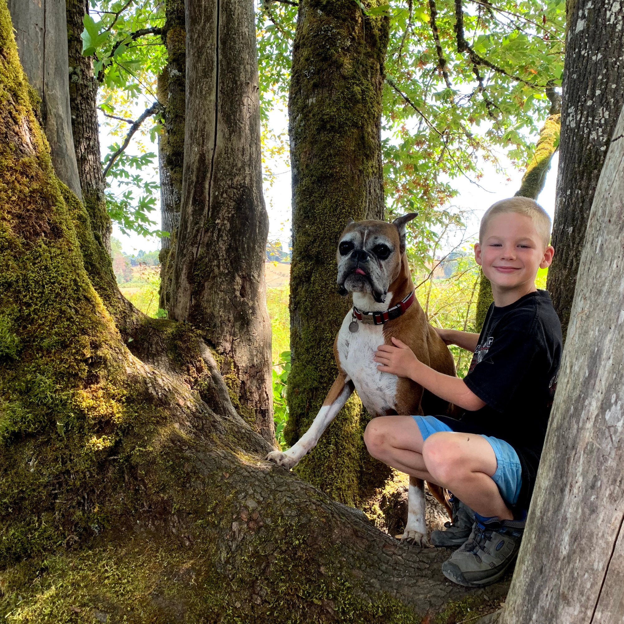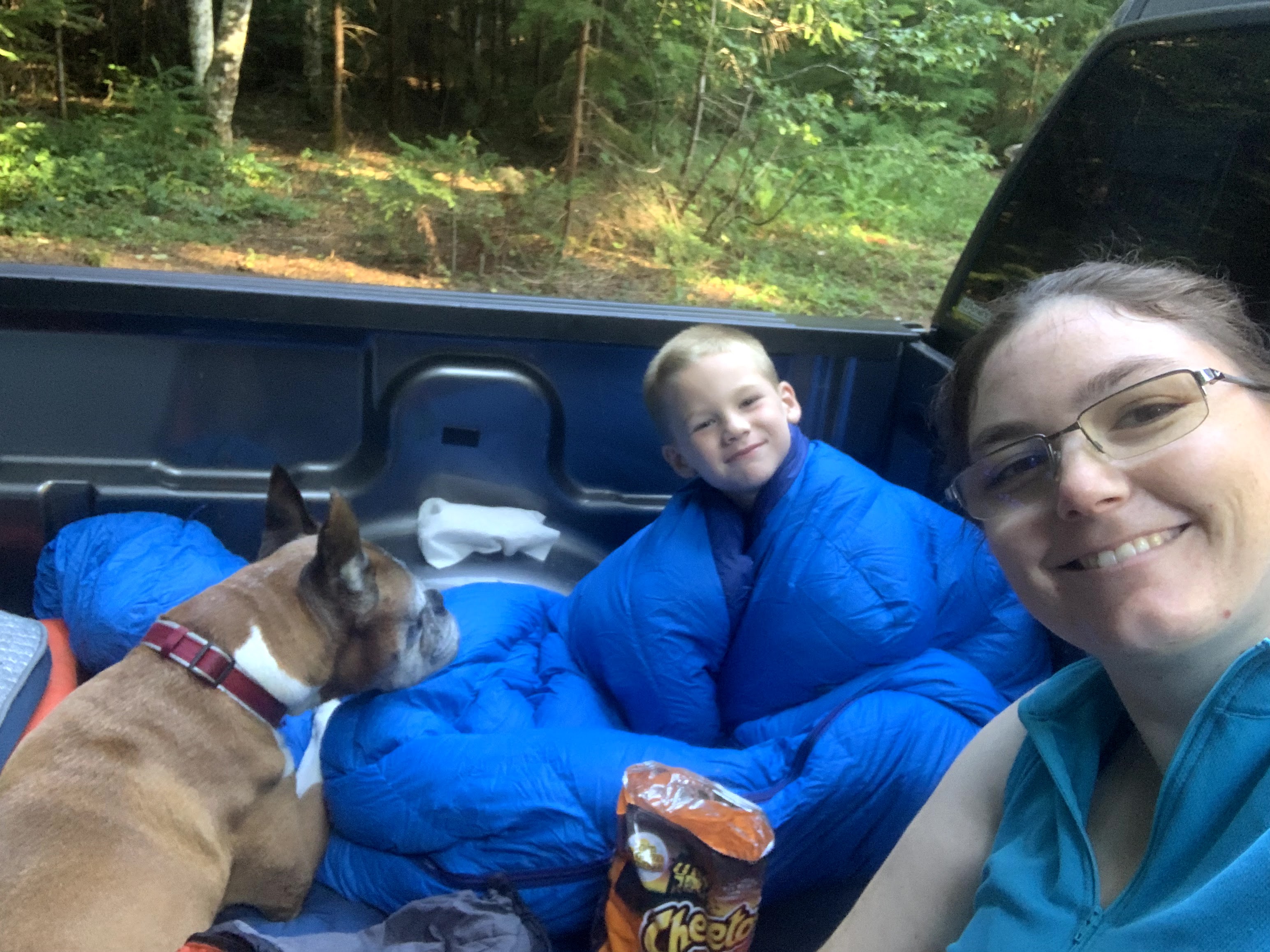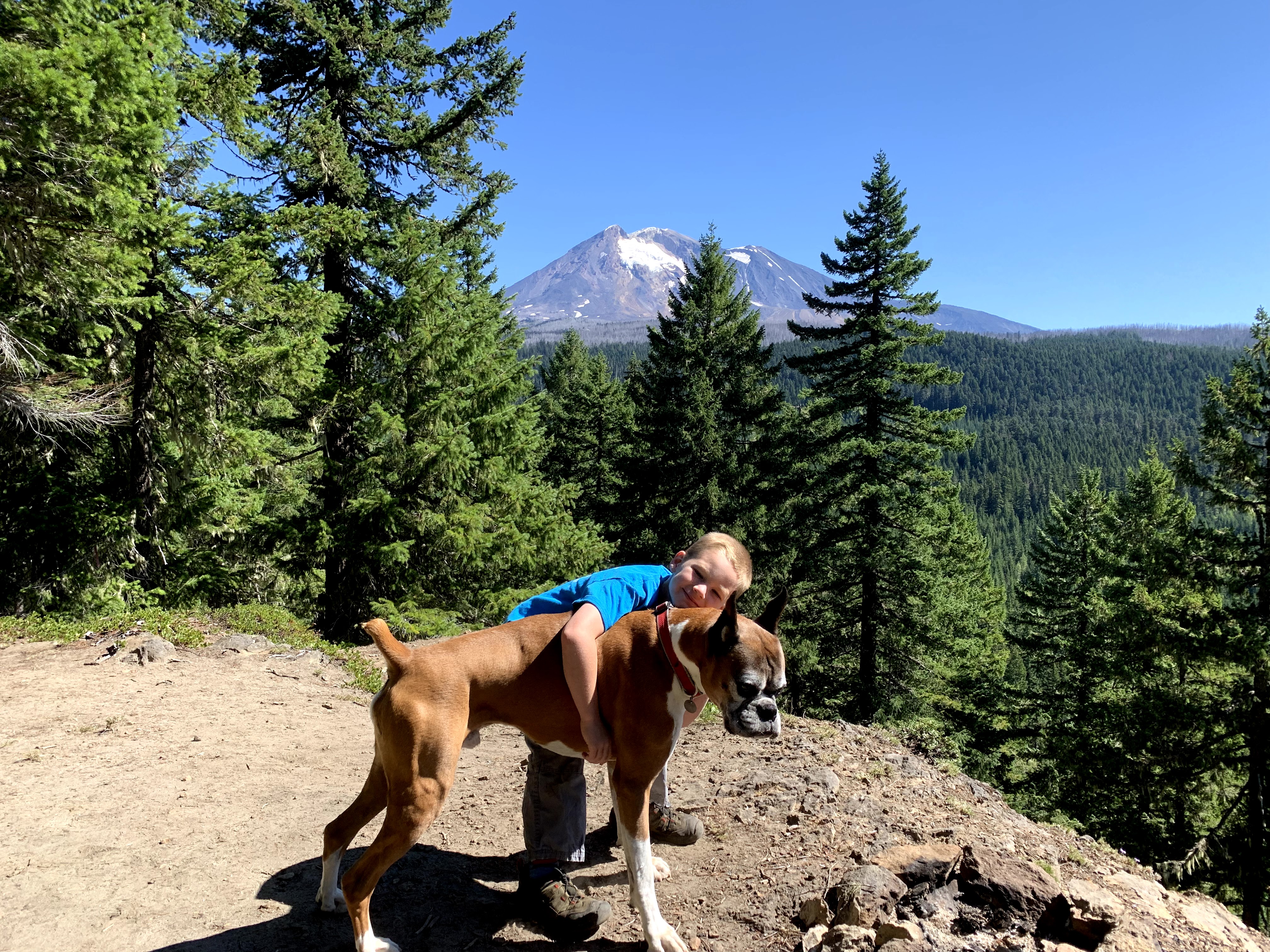 Cyrus hated wearing coats, even though he got cold during late winter visits to the barn. Thankfully he never cottoned on to the joy of hoof trimmings, though he loved sampling some horse poop. We racked up several mileage medals together when I was working to get fit for the surrogacy, his gait was perfect for jogging just a bit ahead of me, keeping me motoring forward. Being on a leash was undignified, though he put up with them for my sake. Playing soccer with his boy was thrilling, though we went through several popped soccer balls. Once, when I dragged Kade and his best friend Naomi up to the PCT to do some trail work, he slept right in the middle of the trail while we cut branches and hauled brush. A few times a month, he’d ditch his normal bed in our room and sleep with the kid, taking up over half his bed. We used to have a well loved blue recliner, and he and Kade were locked into a silent battle for control over it until we got our new sectional. He didn’t enjoy the kiddie pool I got him for hot days, but he loved baths.