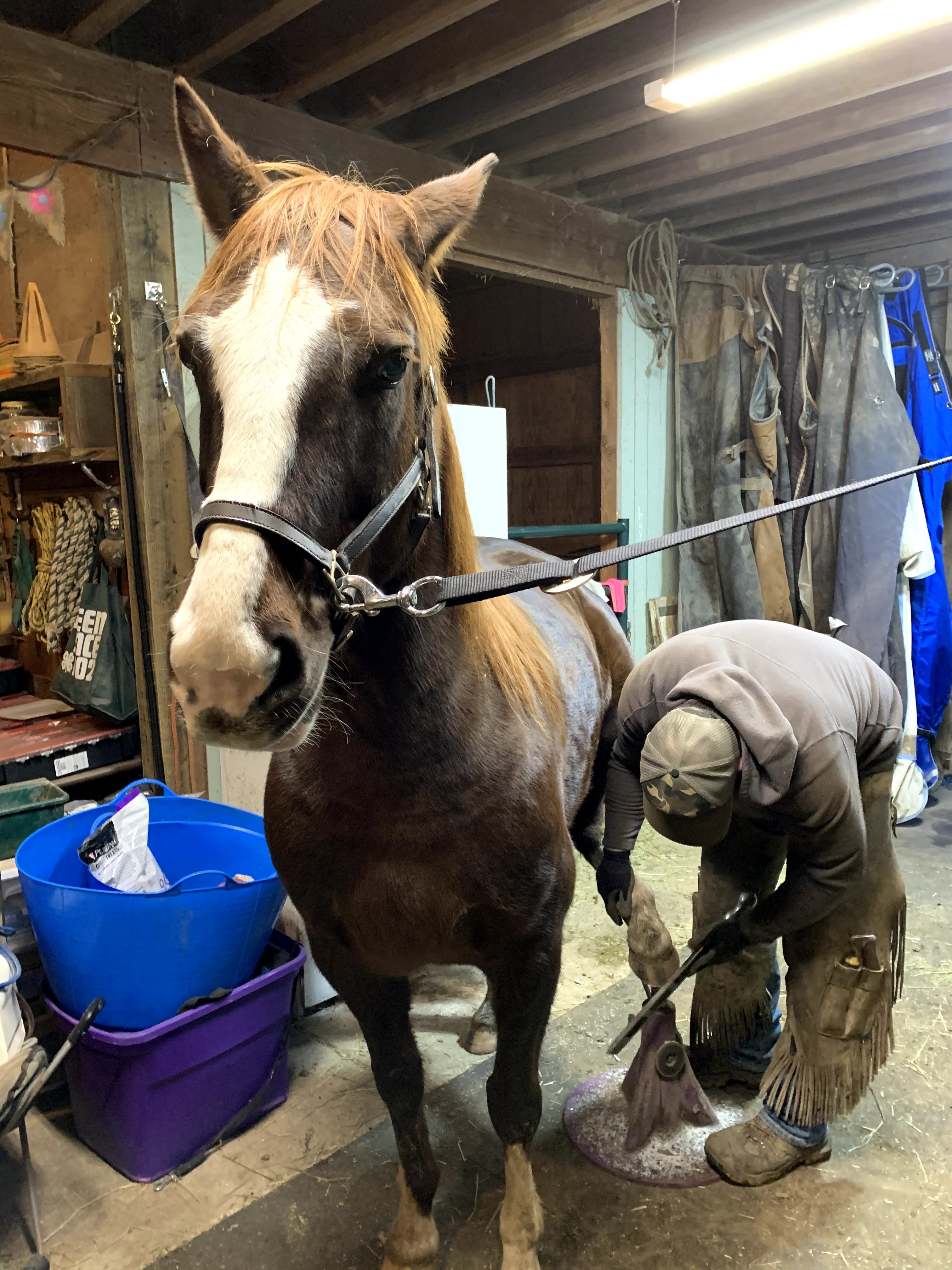 In the small but not to be overlooked good news column, Tarma met her new farrier Jerry on Thursday. I had some PPE x-rays done, no sign of navicular but she had some warning signs of laminitis and too long toes to fret over. I showed the x-rays to Jerry and they didn’t worry him at all, a few good trims and he’ll have her toe back where it should be. He was patient and understanding with her, seeing as how she’s still a bit uncertain about people handling her feet. She’s not mean about it, just a little tense and worried, but nothing plenty of treats and time can’t overcome. He did like her feet in general aside from their shape, even had to use the nippers on her frog when this time of year most horse’s frogs are super soft from living in the mud and wet all winter. It’s always a bonus when your horse care professionals like your horse and your horse doesn’t eat them!