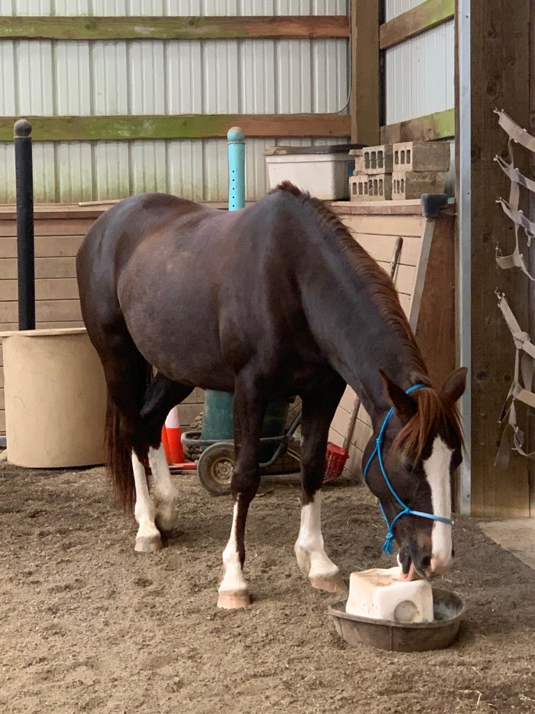 That’s her supplements feeding bag, it’s for when we go camping mostly but also good to get her used to it, having food on your face is relaxing!
