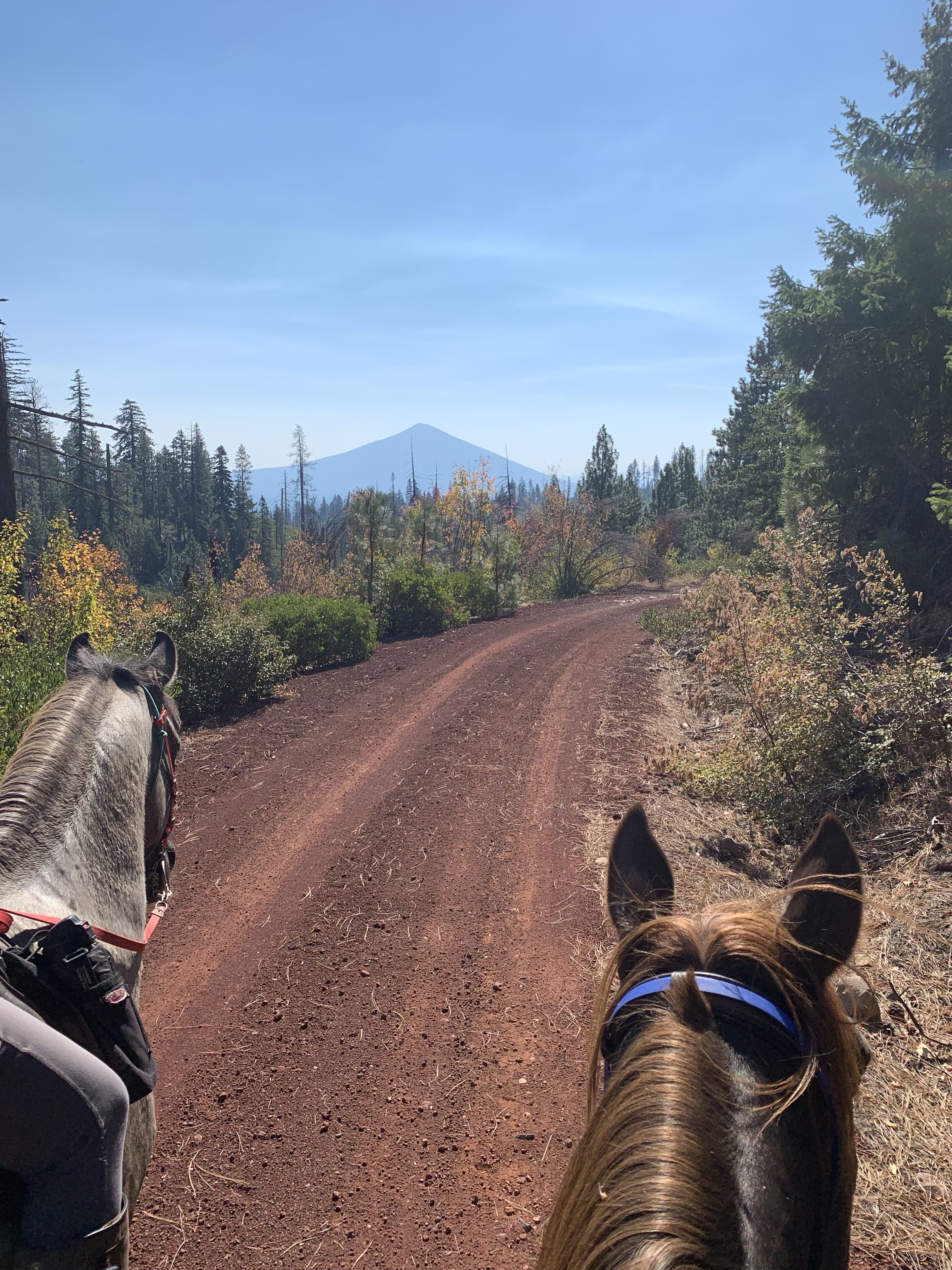 Saturday we accomplished our longest ride together to date, 13.5 miles and 1200 feet elevation gain up through Bear Valley. We had to push through a ton of Manzanita overgrowing the trail, and about five minutes after I said “this is exactly where you expect to see a bear,” we startled a black bear in the valley below! We chose to follow the service roads back to camp so we didn’t make the horses shove through the Manzanita twice, though it added a few miles. Tarma never put a foot wrong, though she did pull mare face a few times, trying to maintain her spot in line, though she never kicked.