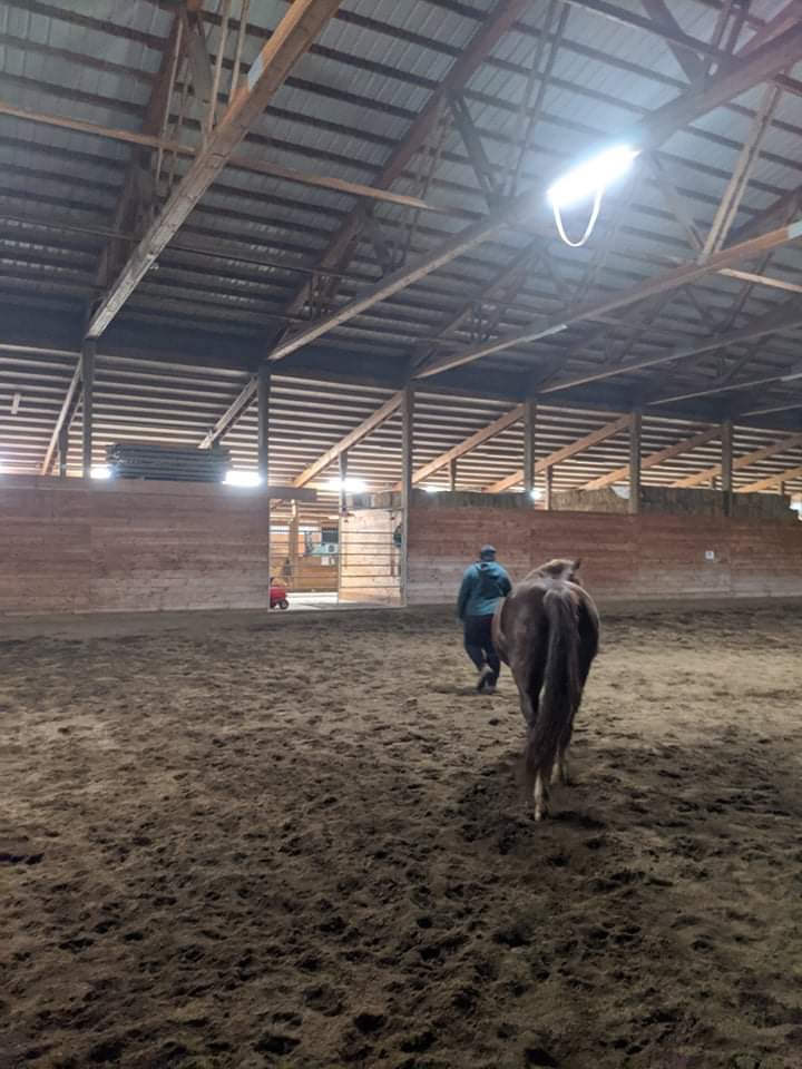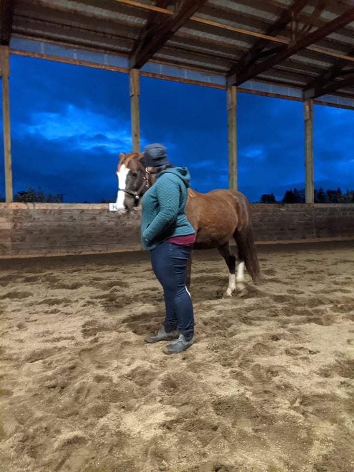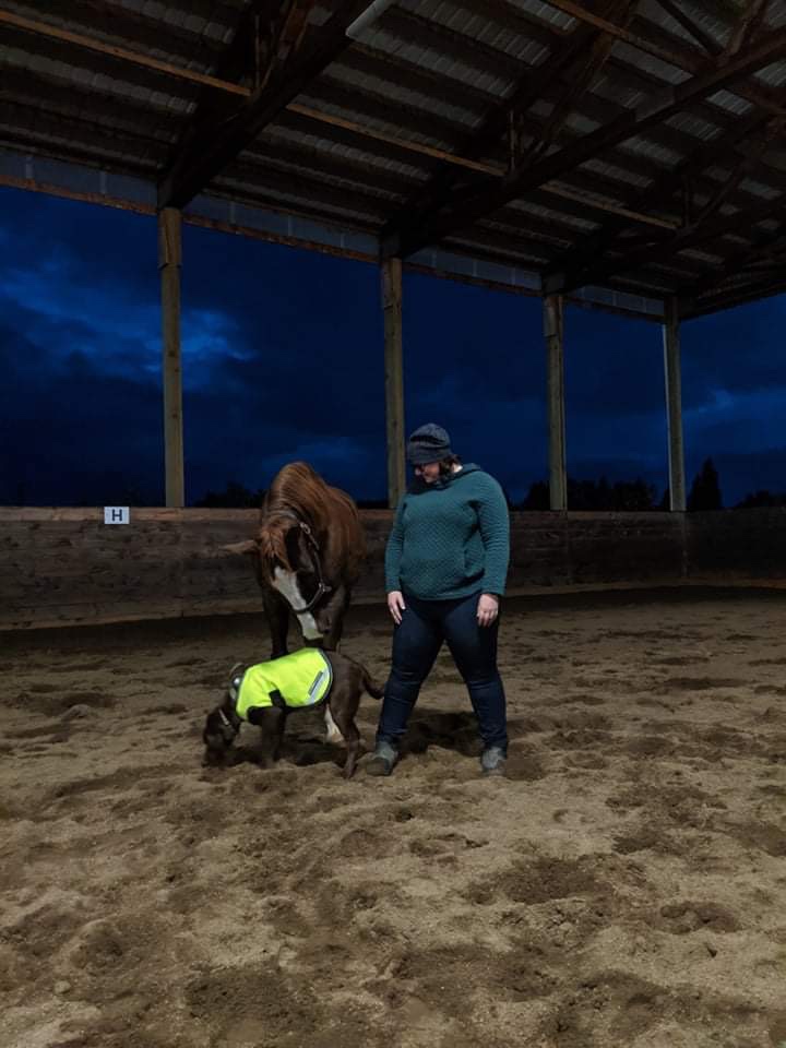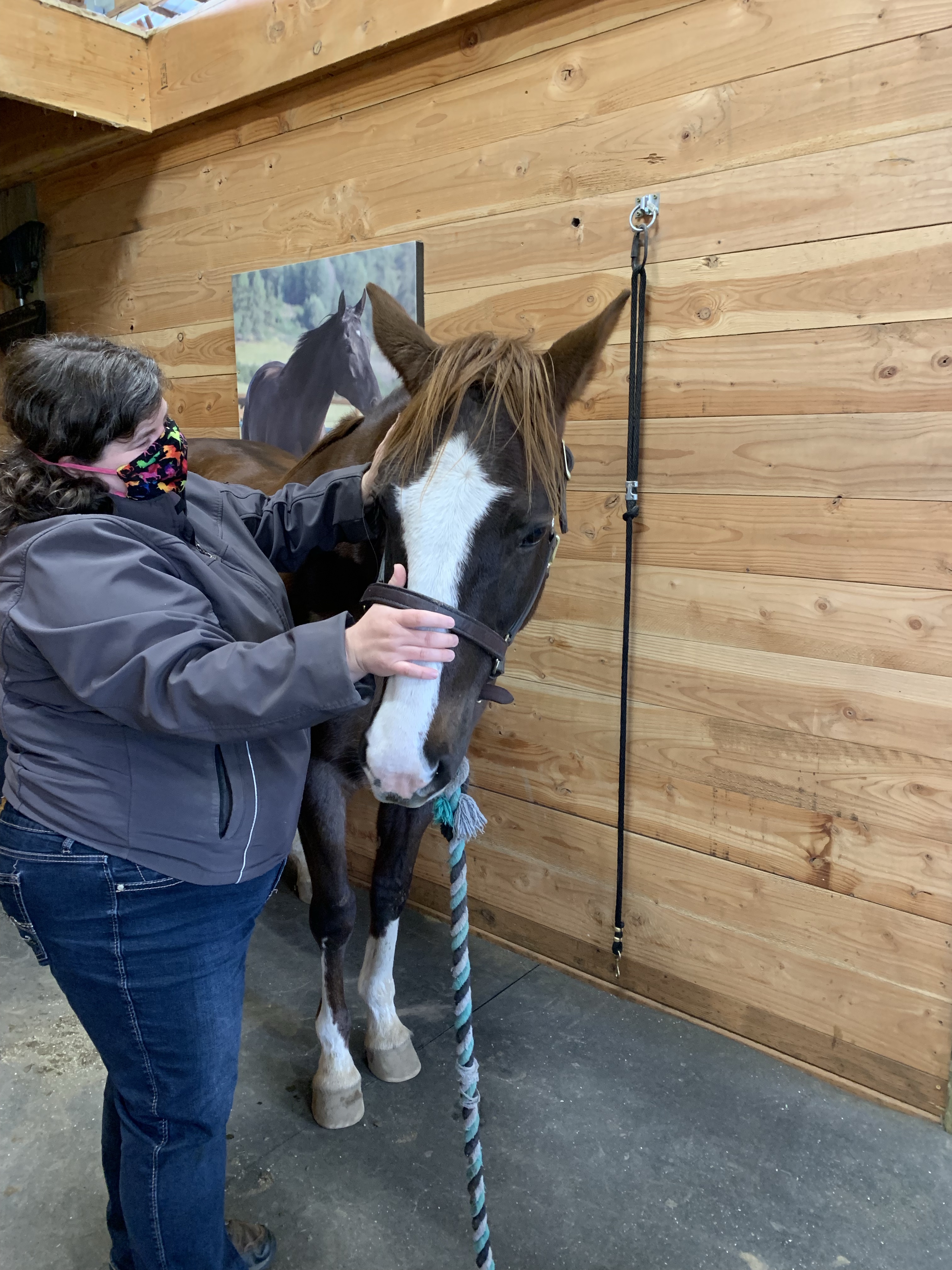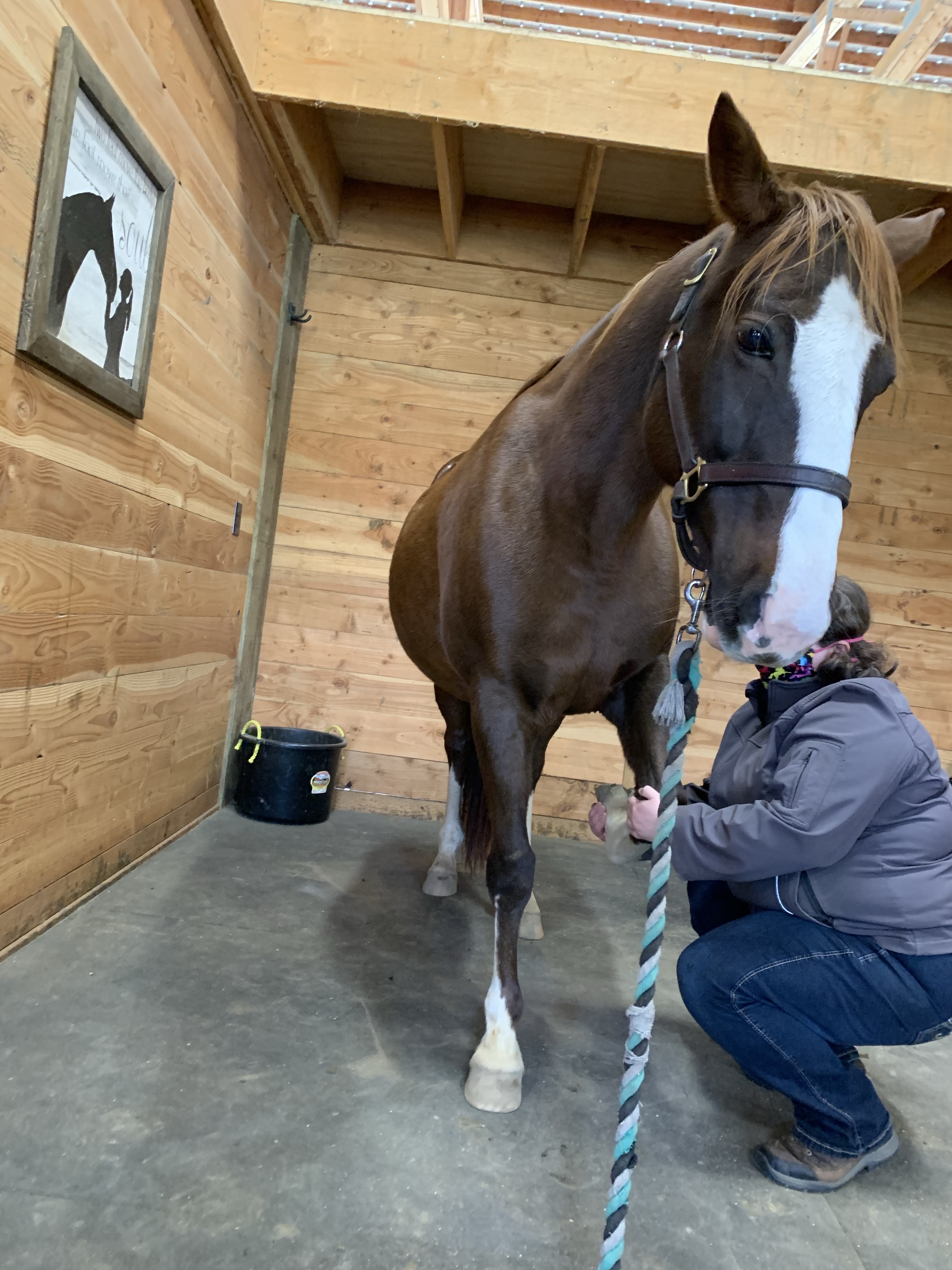 Today my best friend came to my side of the river (9 times out of 10 I just go to her place as the majority of friends and horses live in Washington) so we could hit my second favorite store (Duluth clothing) and try again to get our dogs to play together, both of which were hugely successful and I didn’t have to drive. I brought Tarma to the indoor to lunge before dinner, which wasn’t hard as she just blasted around us and the dogs for a good five minutes, clearly momma felt fine! Then we just relaxed together, while she tolerated the dogs playing around her and I worked on touching her, trying different areas and pressured to find what she likes.