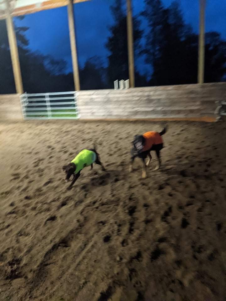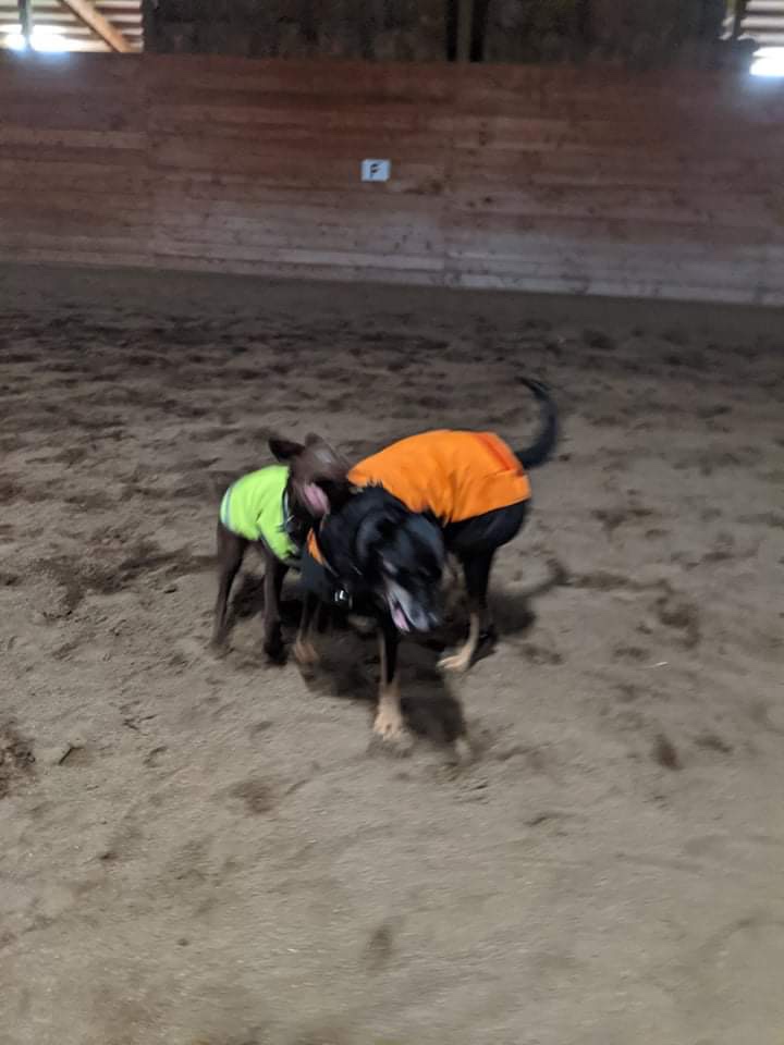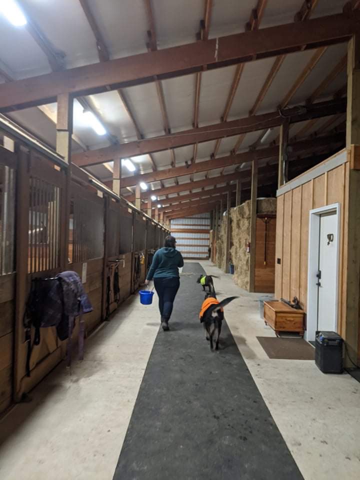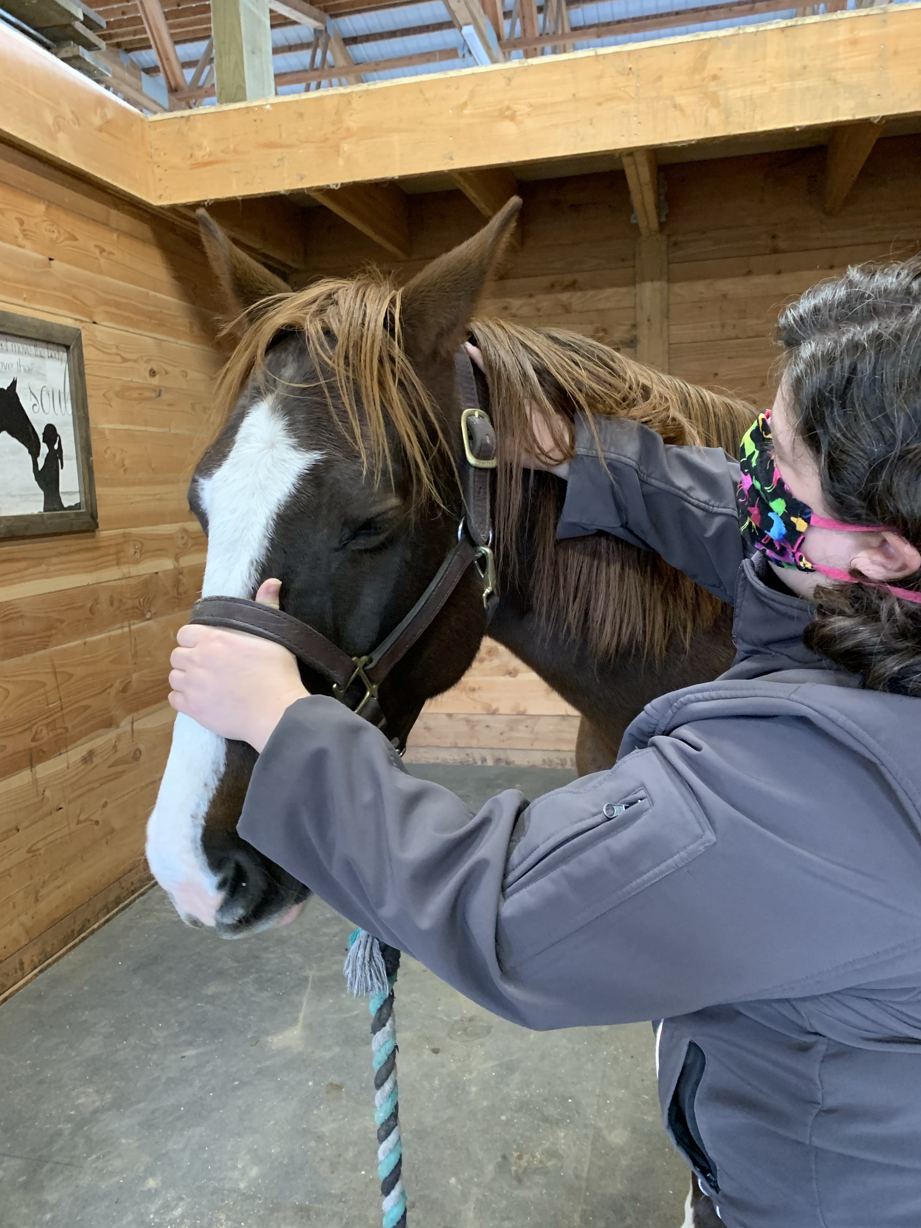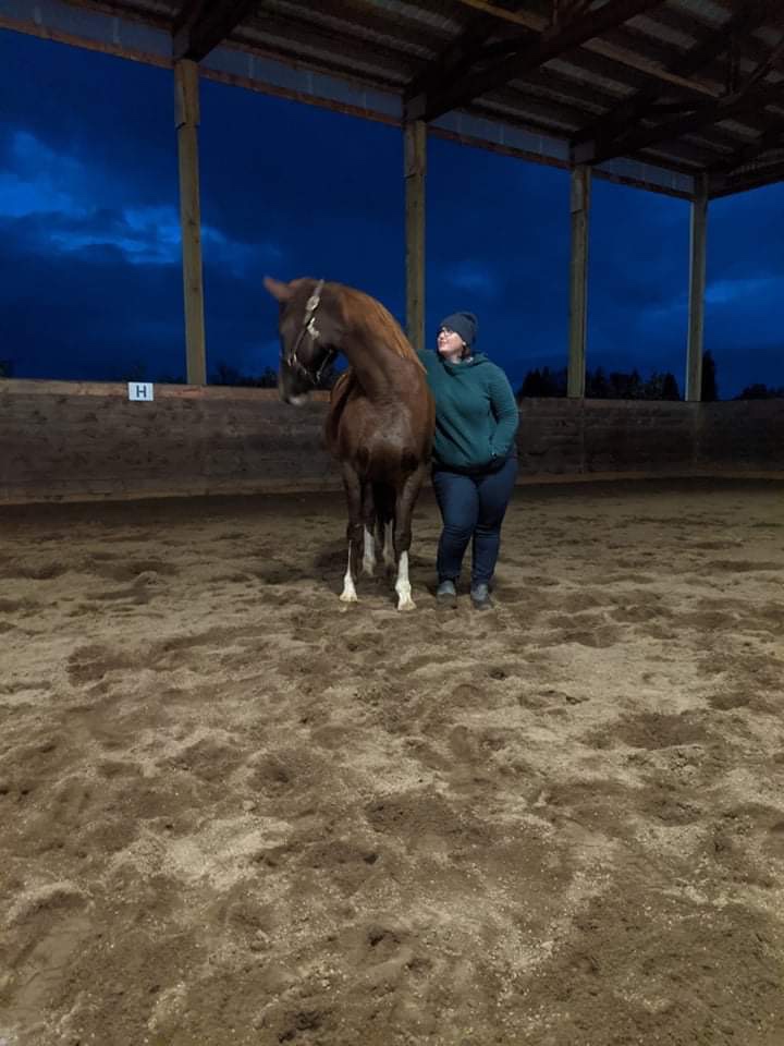 Today my best friend came to my side of the river (9 times out of 10 I just go to her place as the majority of friends and horses live in Washington) so we could hit my second favorite store (Duluth clothing) and try again to get our dogs to play together, both of which were hugely successful and I didn’t have to drive. I brought Tarma to the indoor to lunge before dinner, which wasn’t hard as she just blasted around us and the dogs for a good five minutes, clearly momma felt fine! Then we just relaxed together, while she tolerated the dogs playing around her and I worked on touching her, trying different areas and pressured to find what she likes.