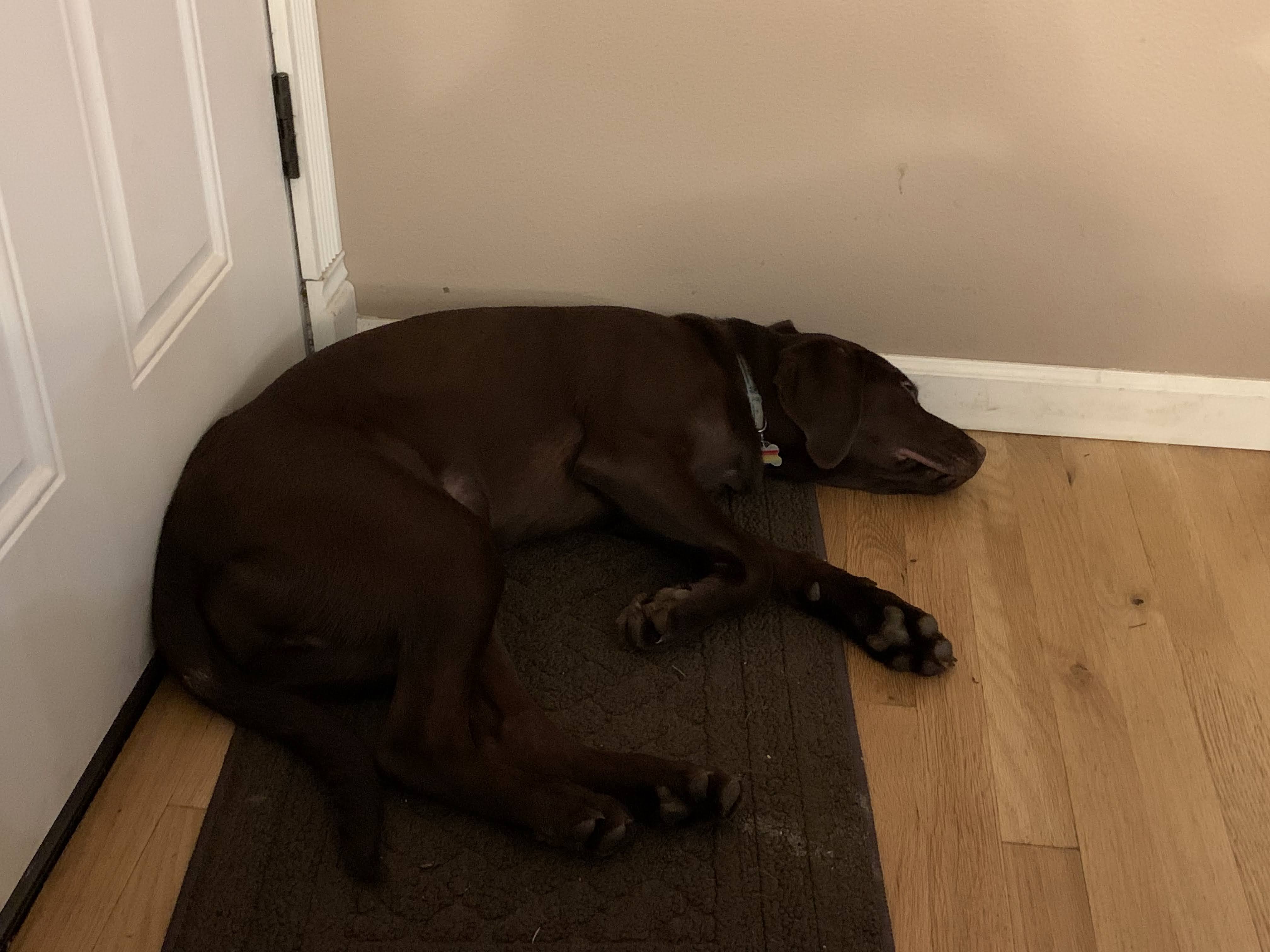 Photo of exhausted puppy for brain bleach