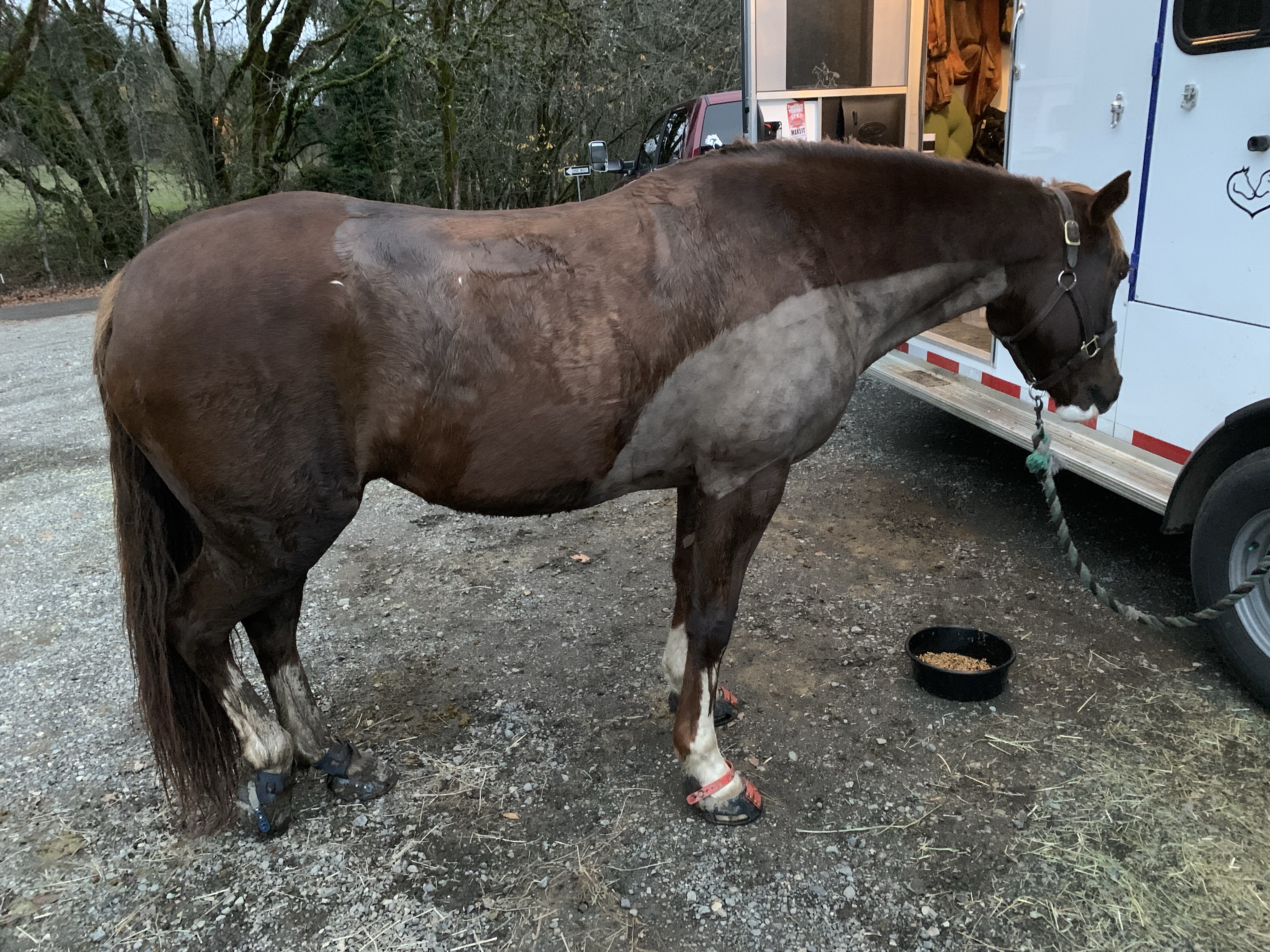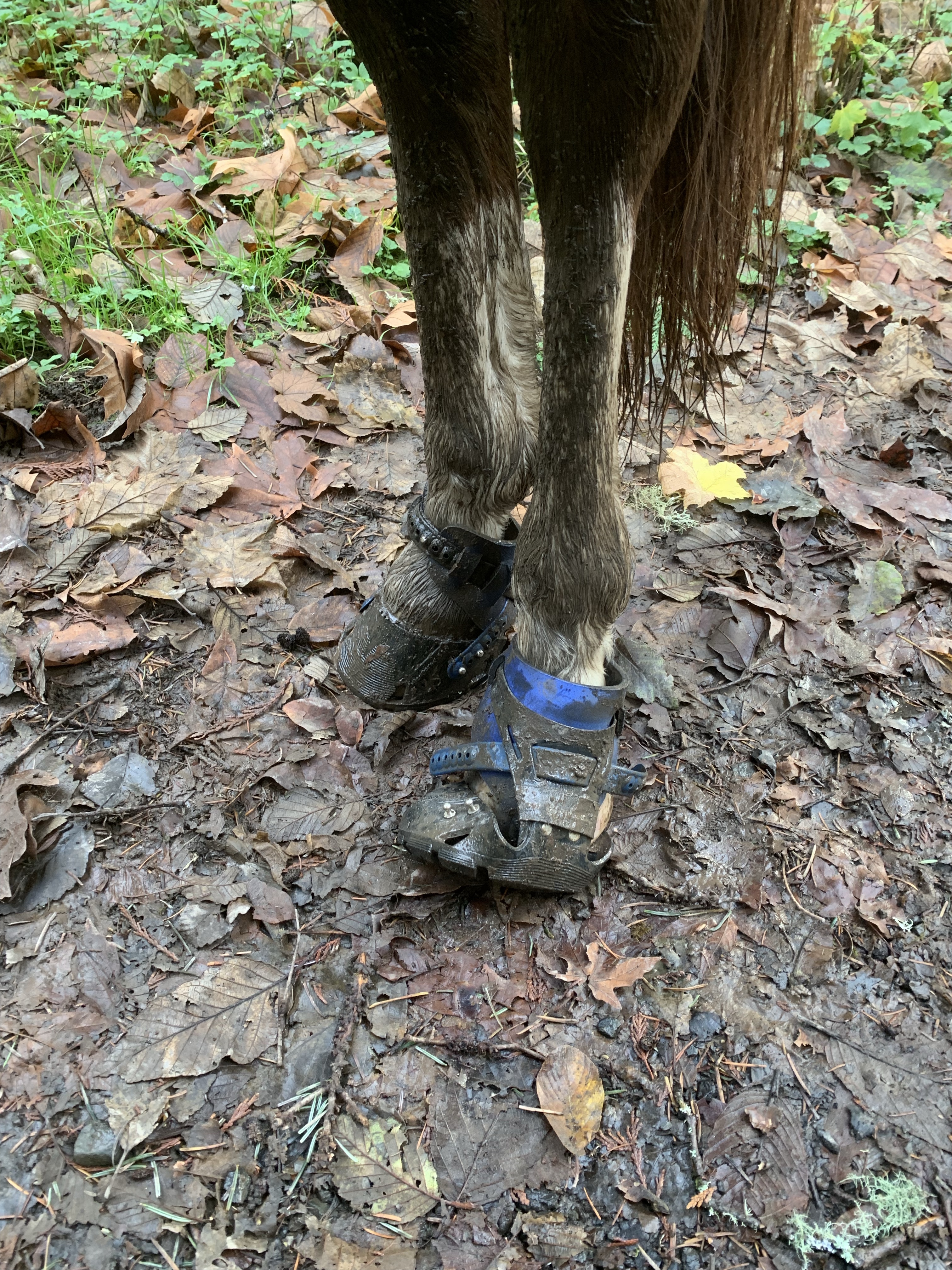 I also had some boot struggles, which meant I had to dismount and remount several times. I’m trying new boots called Flex Boots on her rears, as she can interfere behind sometimes, and while they aren’t rubbing her, she did manage to get them each off several times before I figured out I had to tighten them even more. Tarma handled each incident with aplomb, letting me fetch a thrown boot or futz with a twisted one without any fuss.