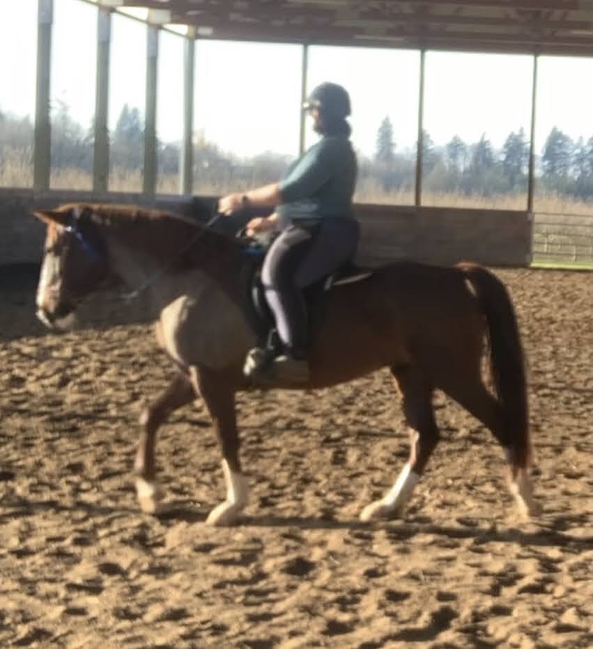 She still doesn’t love grooming (unless she can eat while I do so, then she’s fine). She will pick up her feet now for pretty much anyone, she lets me wash down her legs and feet while ground tied, and I’ve learned the difference when she’s telling me to get off and fix something (like the saddle sitting on her shoulders) and when she’s just being young and free to give her opinion. To her credit, she’s never really tried to dump me on purpose, and once I fix whatever’s wrong she’s fine. Riding circles in the arena is a struggle for us both, due to my sorry lack of condition and clarity in what I’m asking her to do and her not really seeing the point of it. At least after Wednesday’s ride I feel we’re ready for the Olympics, in that we were able to do several circles and turns nicely rounded without too much leaning, inside leg to outside rein like a real dressage pair! That it all fell apart when we trotted doesn’t really need mentioning does it?