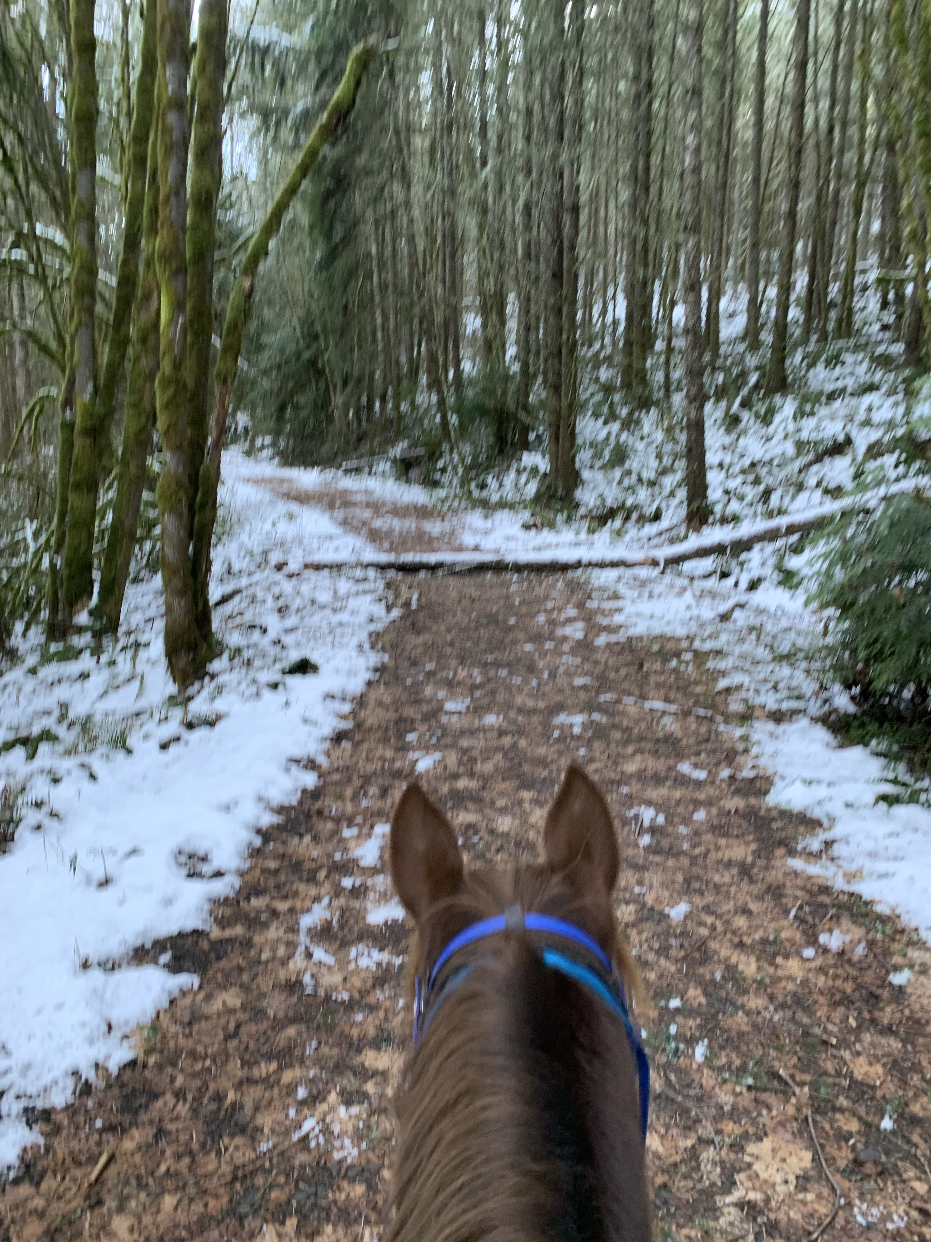 The only weird part of the day was Tarma holding in her need to pee until I let her into the arena at home for her post ride roll. She rolled three times, groaned, and peed up a storm. You couldn’t have peed anytime in the past four hours, including in the fresh shavings in the trailer? Weird mare! But also an excellent mare, she put up with Benny and everything I asked of her today calmly and with that “what’s down the trail?” thoughtfulness I adore. Good chocolates and such a wonderful way to kick off the new year!