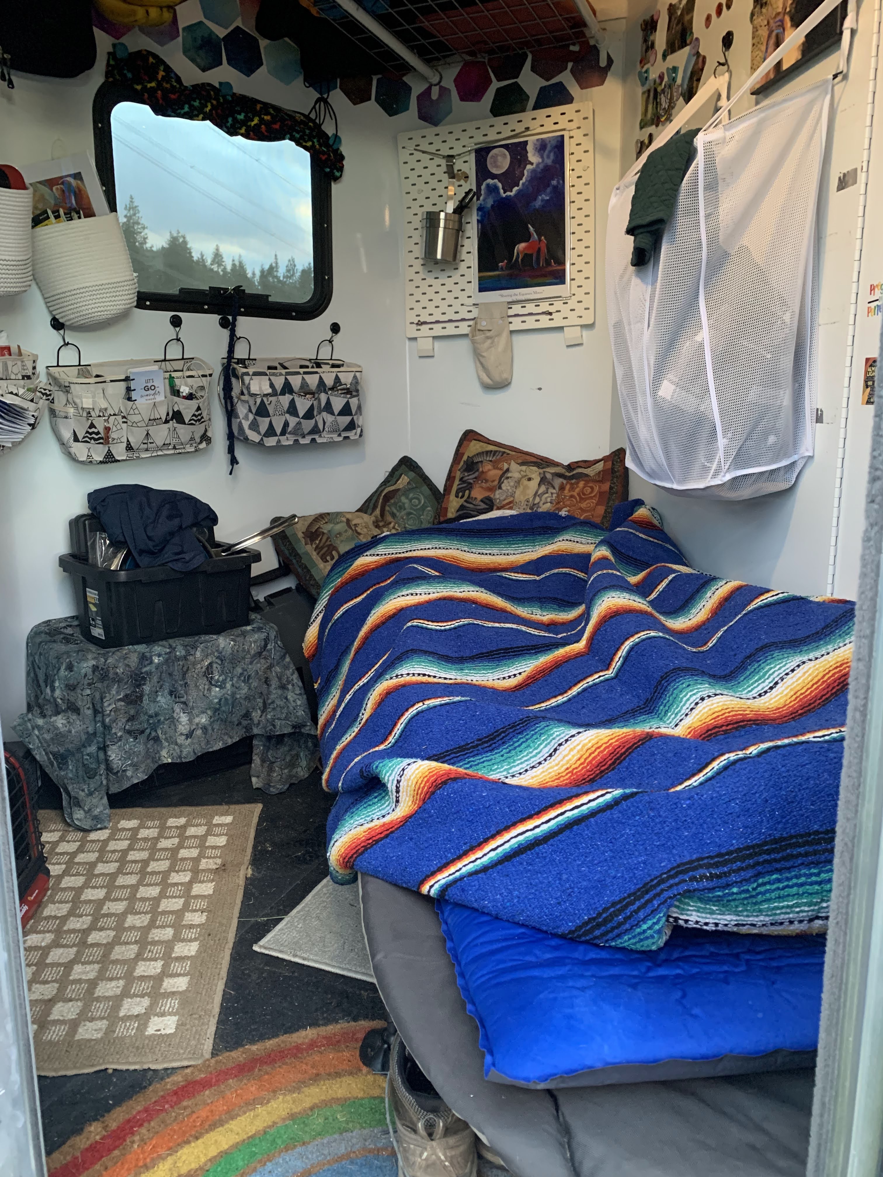 - Horse and human clothing: As this ride goes West to East, it was colder to start so I’m super glad I brought Tarma’s midweight winter blanket, the first two nights it was almost freezing! By the fourth night she didn’t need any blankets thankfully. The only thing I forgot of my huge packing list was my raincoat, which luckily I didn’t need, though I did have a cheap back up poncho. With my new trailer almost laid out exactly how I want it, I was able to organize all my clean clothes and keep them separate from the dirty clothes, and keep my PJ’s hay and dust free. Also, I finally packed the correct combination of blankets to sleep comfortably without having to turn on the Buddy Heater in the middle of the night (that number is four, including the down sleeping bag itself).