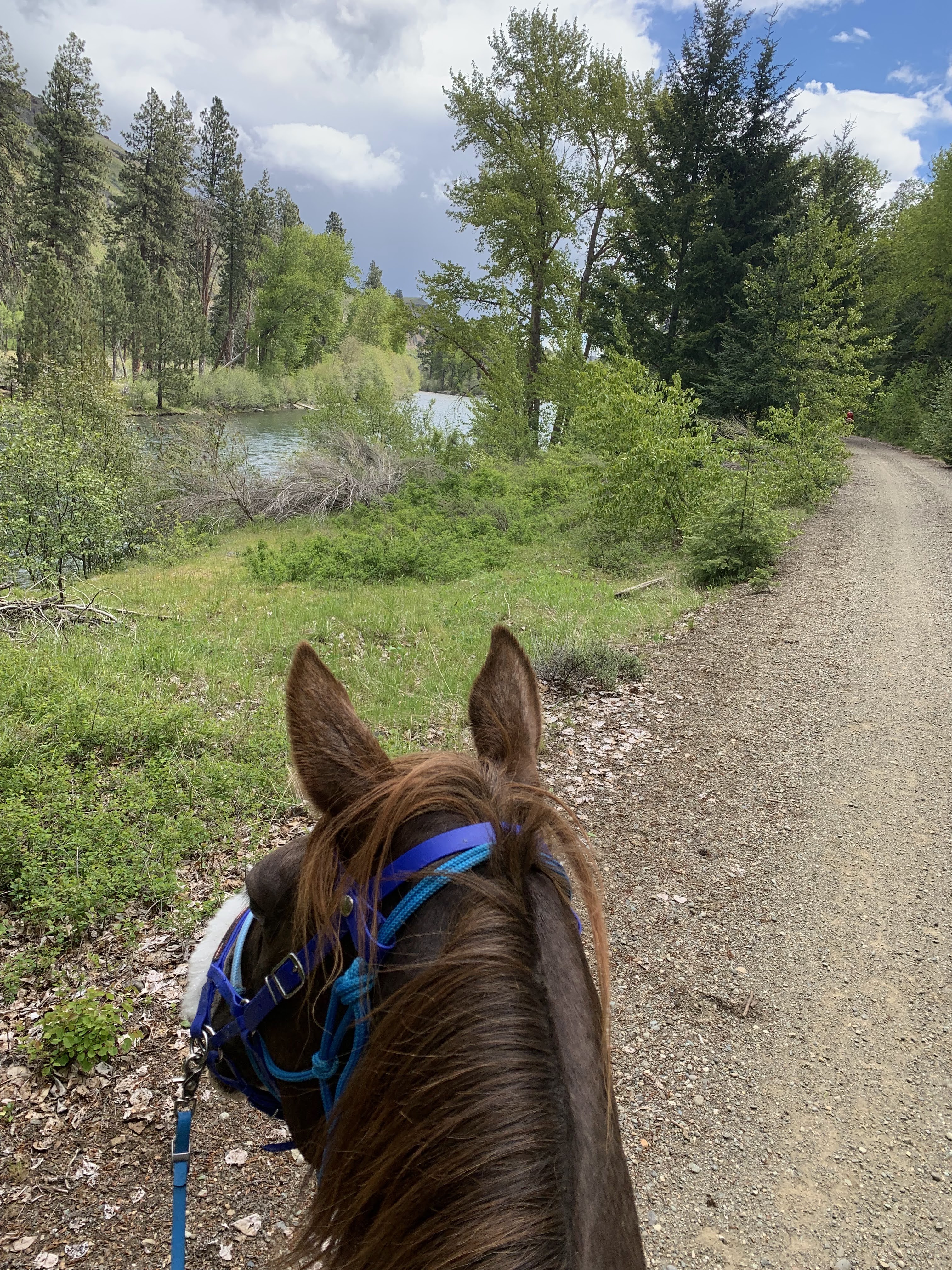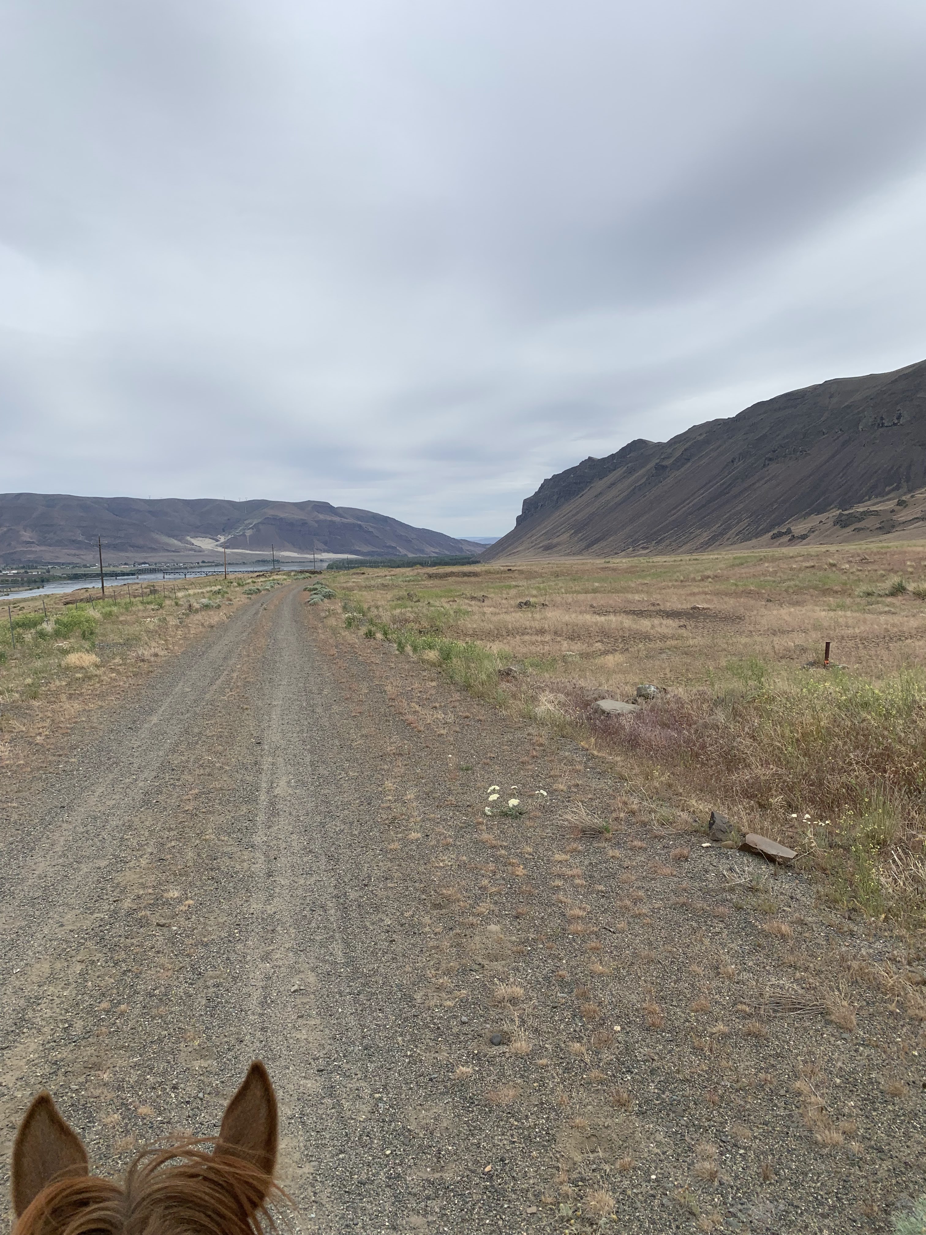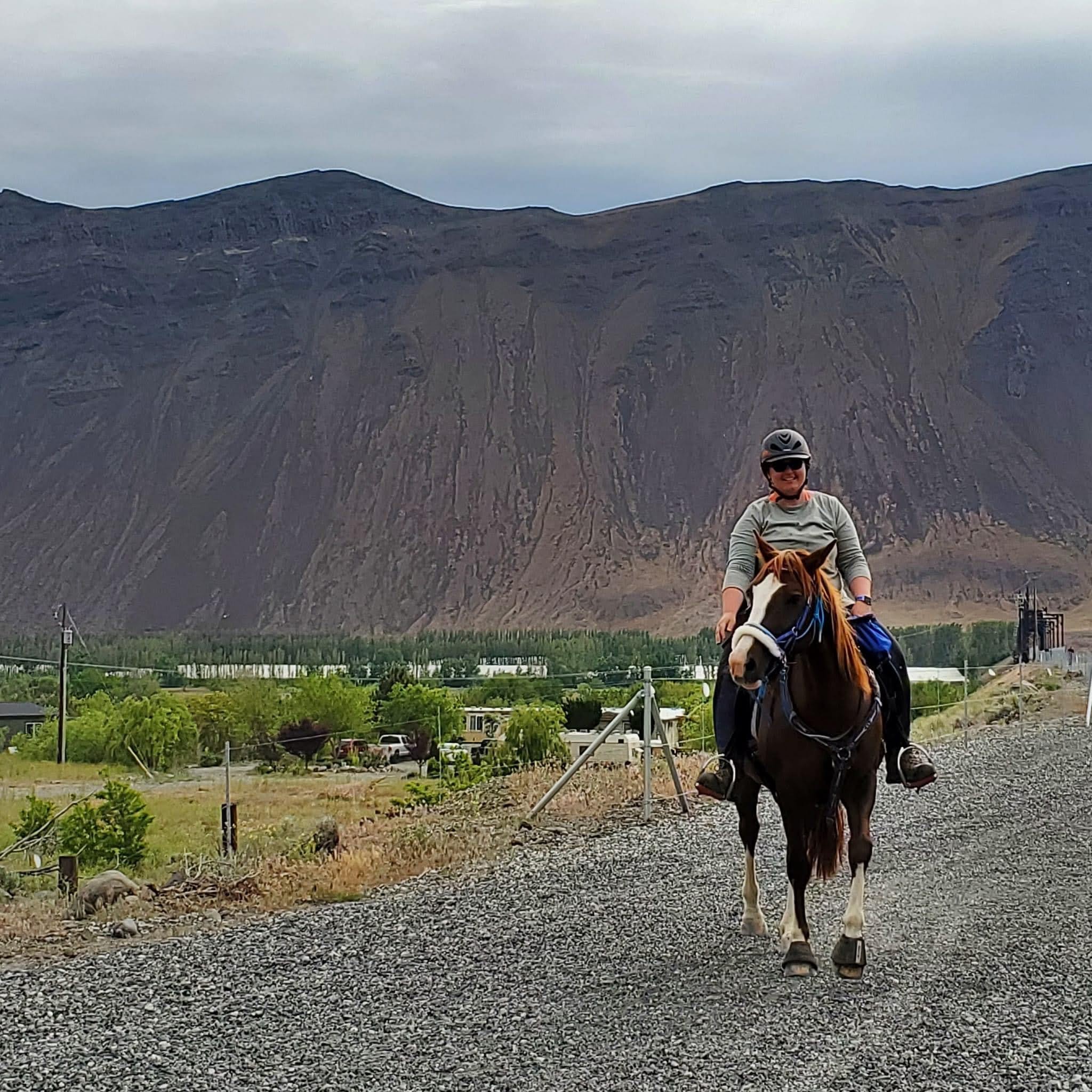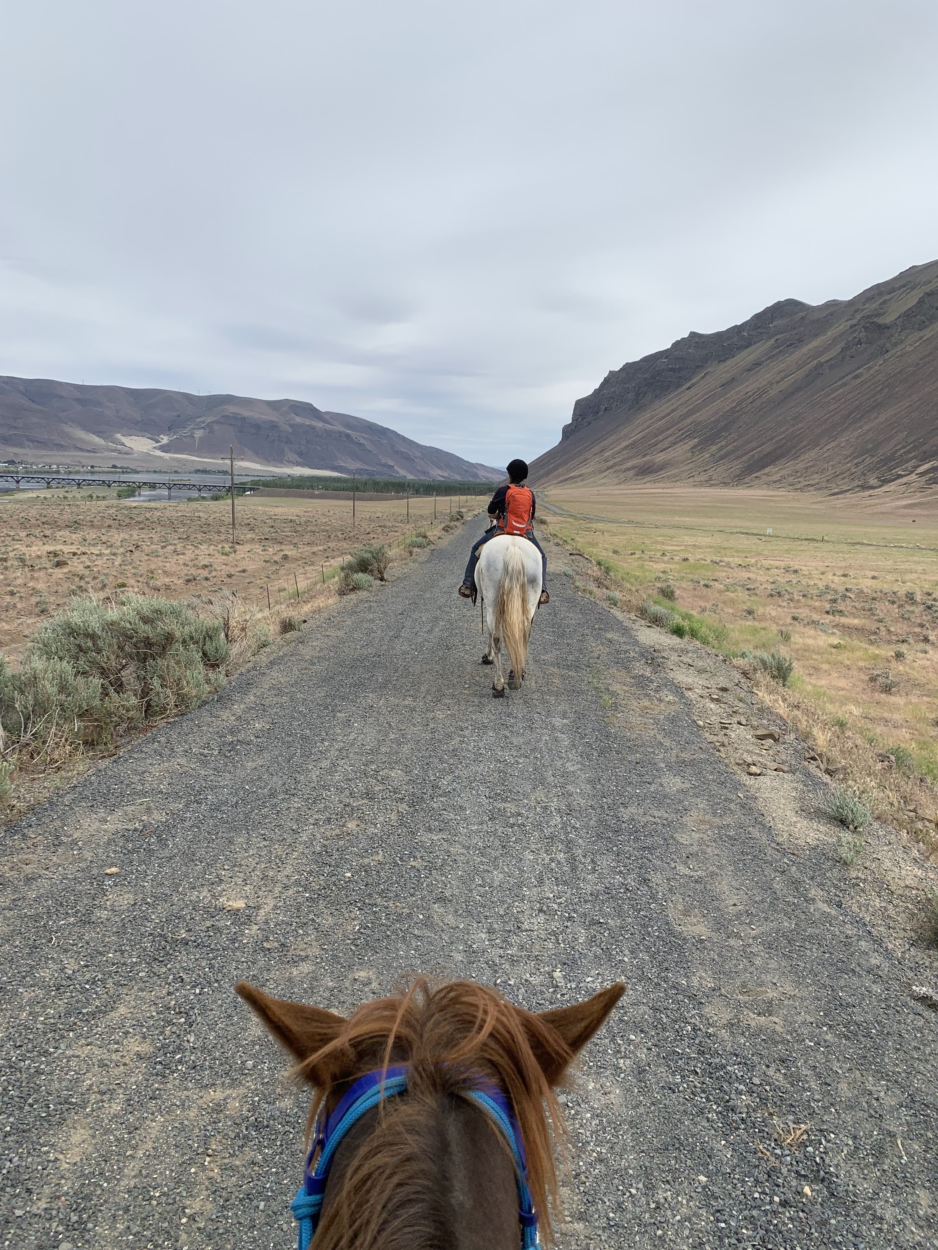 My favorite moments, aside from pretty much enjoying the whole thing (minus two moments I’ll get into below) including trotting on a loose rein for miles, barely needing to post her powerful Morgan road trot; riding across the Beverly Bridge while singing Hamilton to keep us both relaxed, the Columbia River sliding beneath us; the shaved ice cone with sweet cream I devoured in Kittitas; waking up in my cozy sleeping bag, opening my trailer door, and handing Tarma some peppermints (this will never get old); parading through Ellensburg, Tarma being more concerned with making her way to the front than with all the traffic; being serenaded by a guy outside Ellensburg with a banjo; napping in my trailer with the door open, listening to Tarma chow down; that feeling of deep relief every morning when I hop off the bus and my horse is fully tacked, still calmly tied to the tree where I left her. My absolute proudest moment was untying my Artic Skirt from the back of my saddle and tossing it on at Tarma’s fastest possible walk with no hands on the reins, moments before it started to hail! Luckily it only lasted a few minutes and we were able to trot and canter out of it.