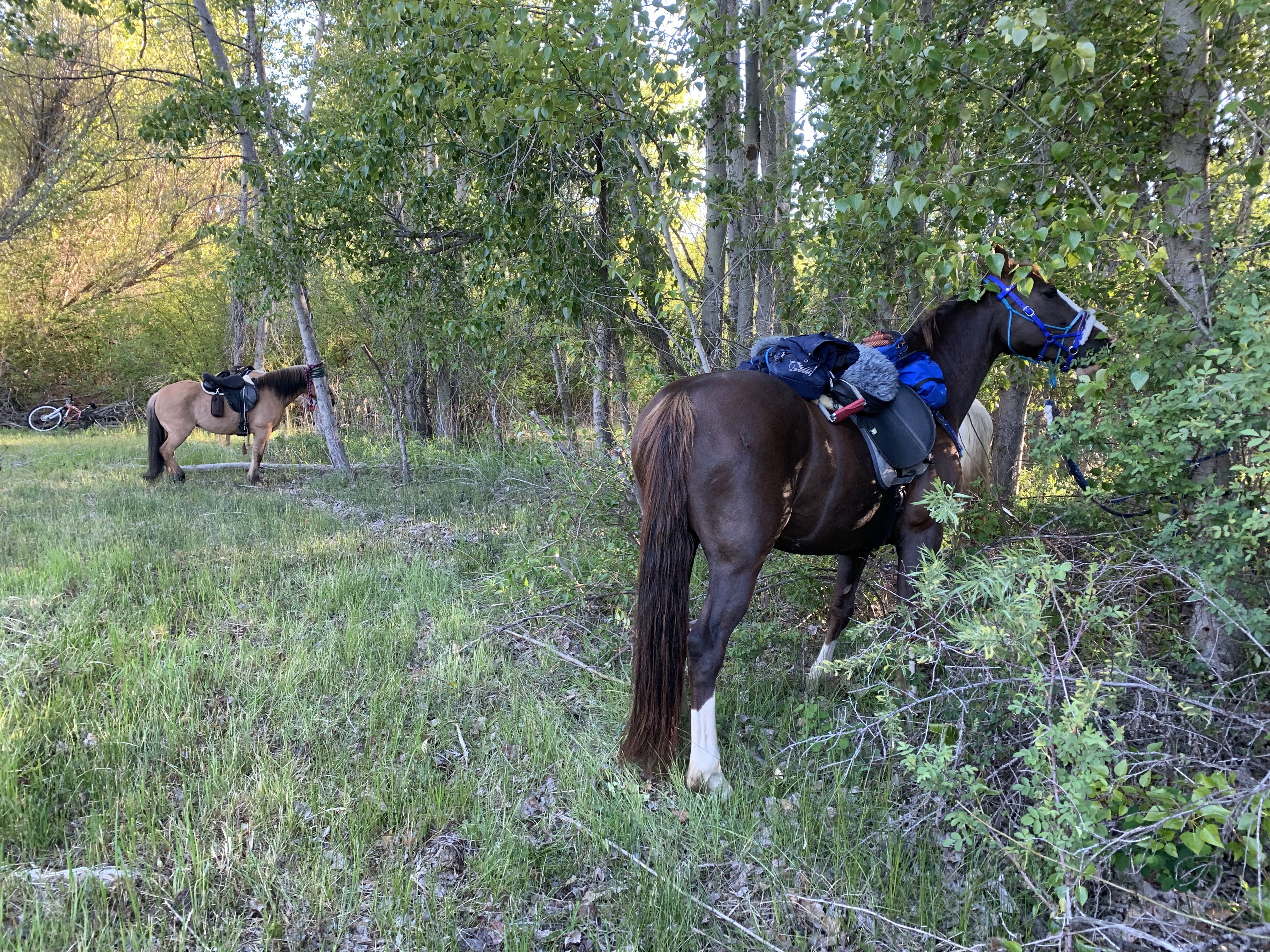 - Tighten your girth or cinch before leaving, not quite to riding tightness but definitely more than you think you’ll need. The first day I didn’t do up her girth enough, so the saddle slipped and hung sideways by the breast collar. Luckily Tarma was calm enough for some total strangers to approach and untack her.