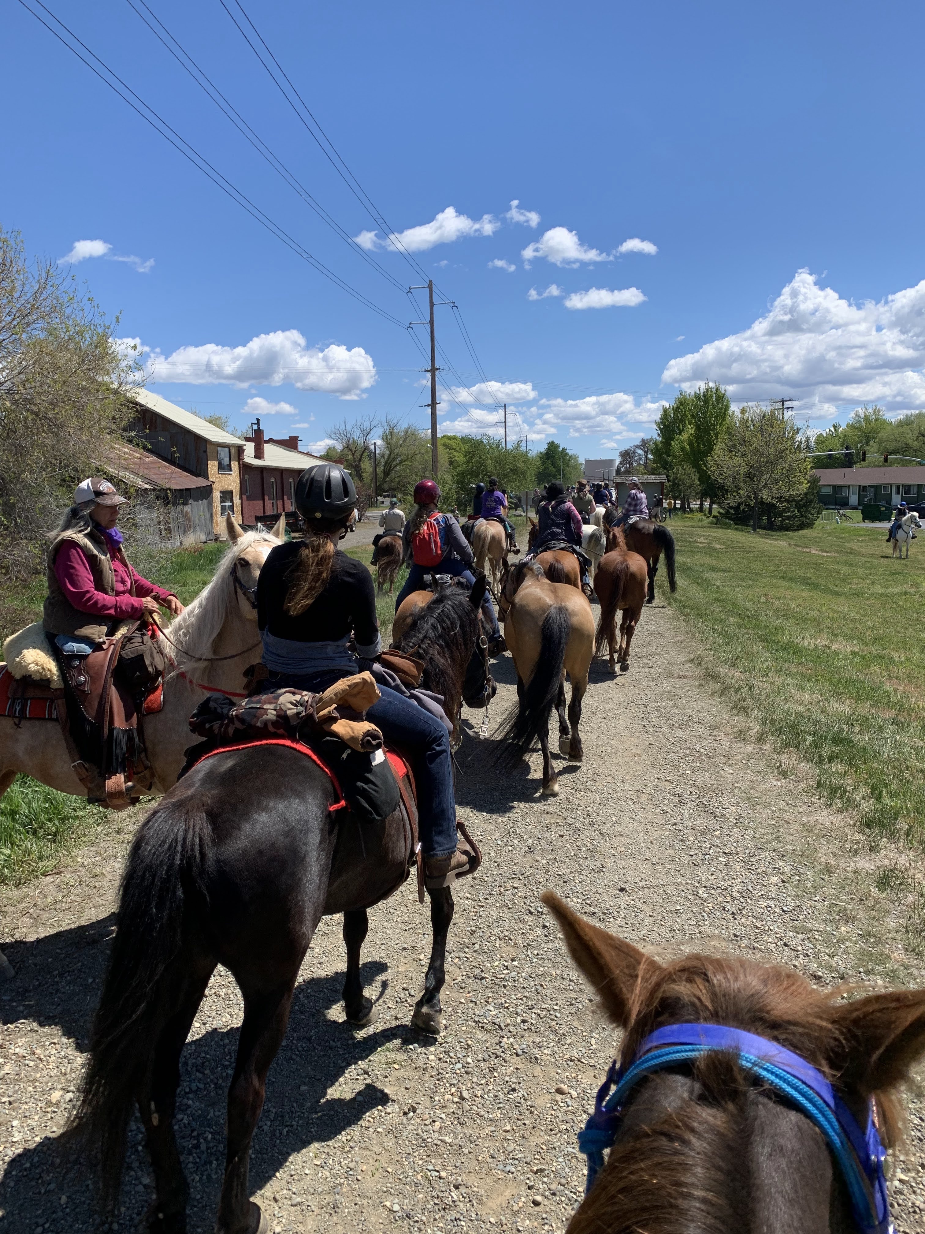 - Go with the flow: Literally take a chill pill of some variety and keep that grace with you the entire time. The third day was supposed to be riding from Thorp to the Ellensburg Fairgrounds, where there would be showers! Instead someone majorly fucked up and the fairgrounds were full with another event’s rigs, so we ended up camping on the trail in Kittitas at the last moment (we were lined up for the daily caravan and sat for almost an hour while the ride organizers scrambled to find out where to put us!) This meant no showers and an extra 4 miles or so of riding, plus rescheduling the police escort through Ellensburg. I wasn’t involved in any of this of course, but still had to handle the changing circumstances and Tarma was tied to a tree for close to three hours that day (luckily a place that still had grass!)