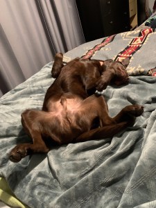 Today our chocolate bundle of perpetually damp chaos is a year old. Whew, we survived Benny’s puppyhood! He’s a fully formed dog that requires no more training!