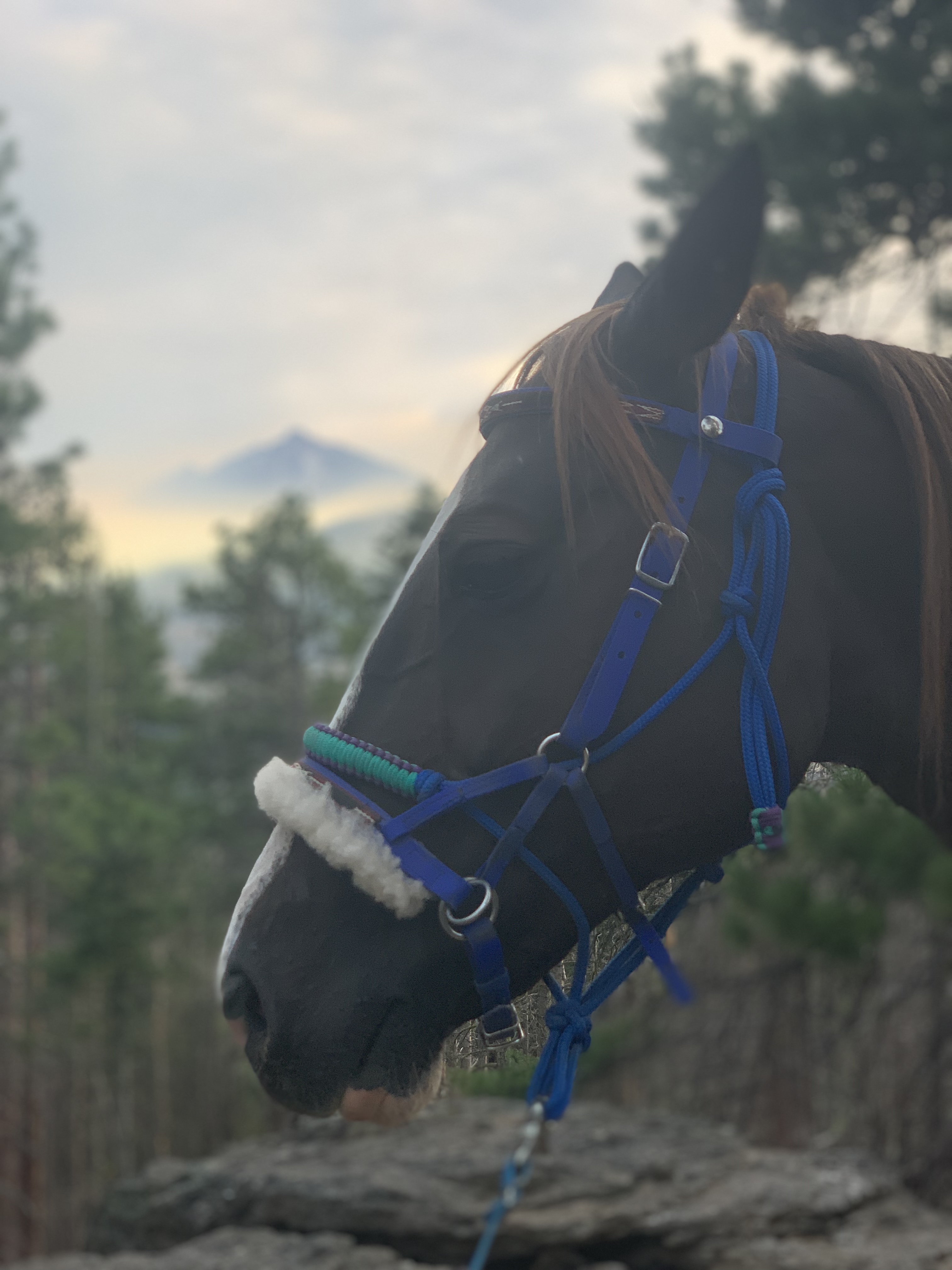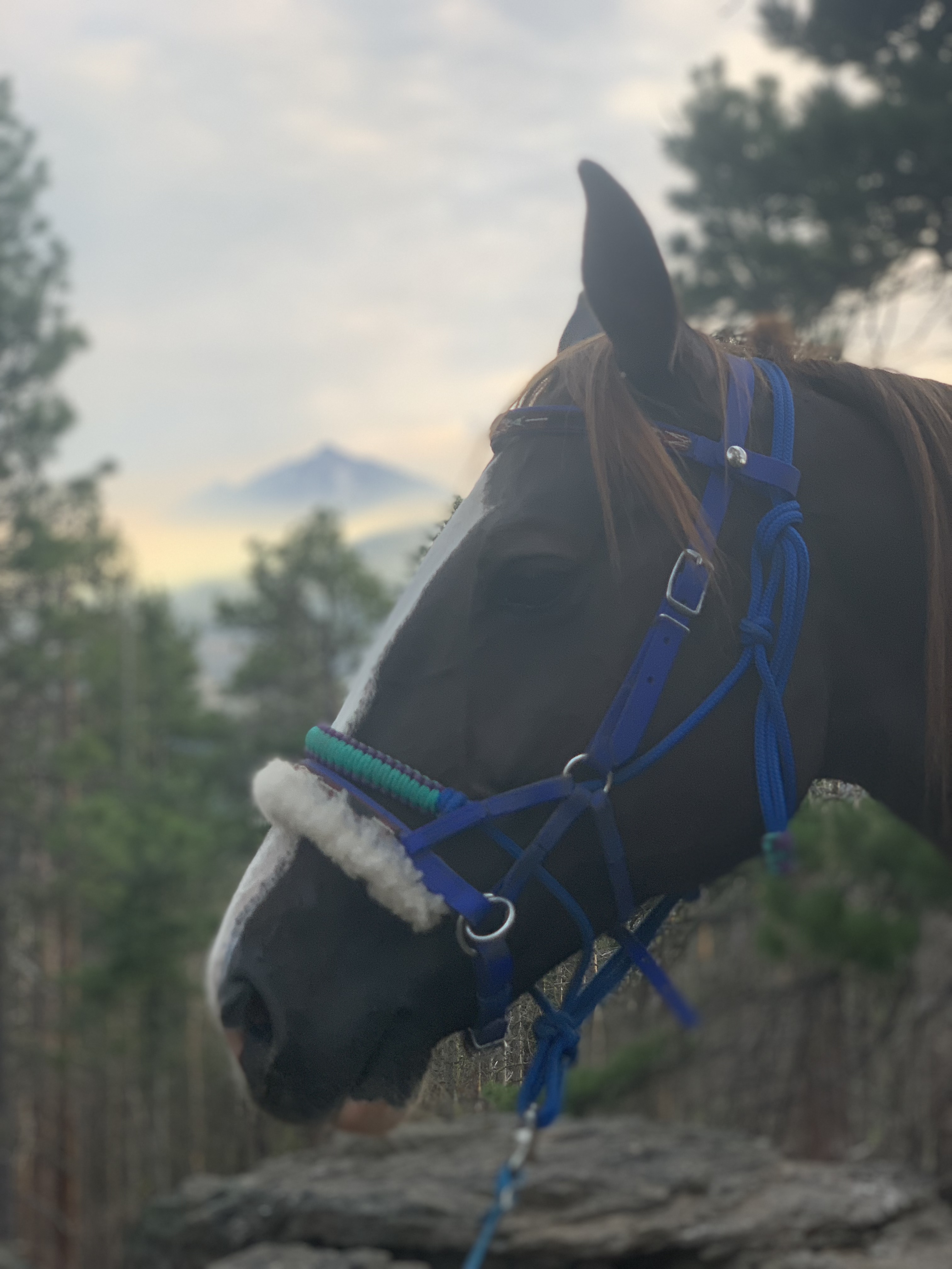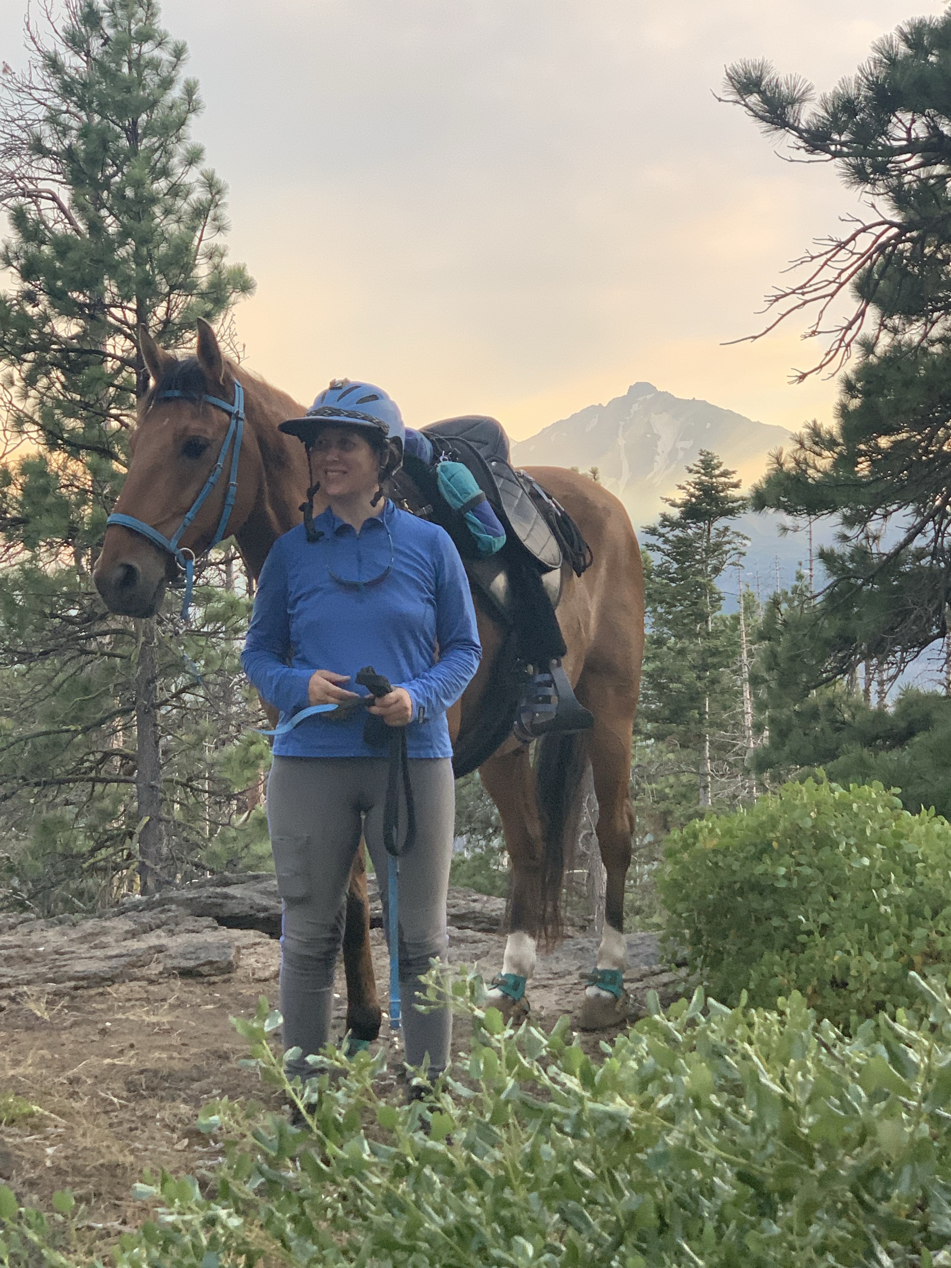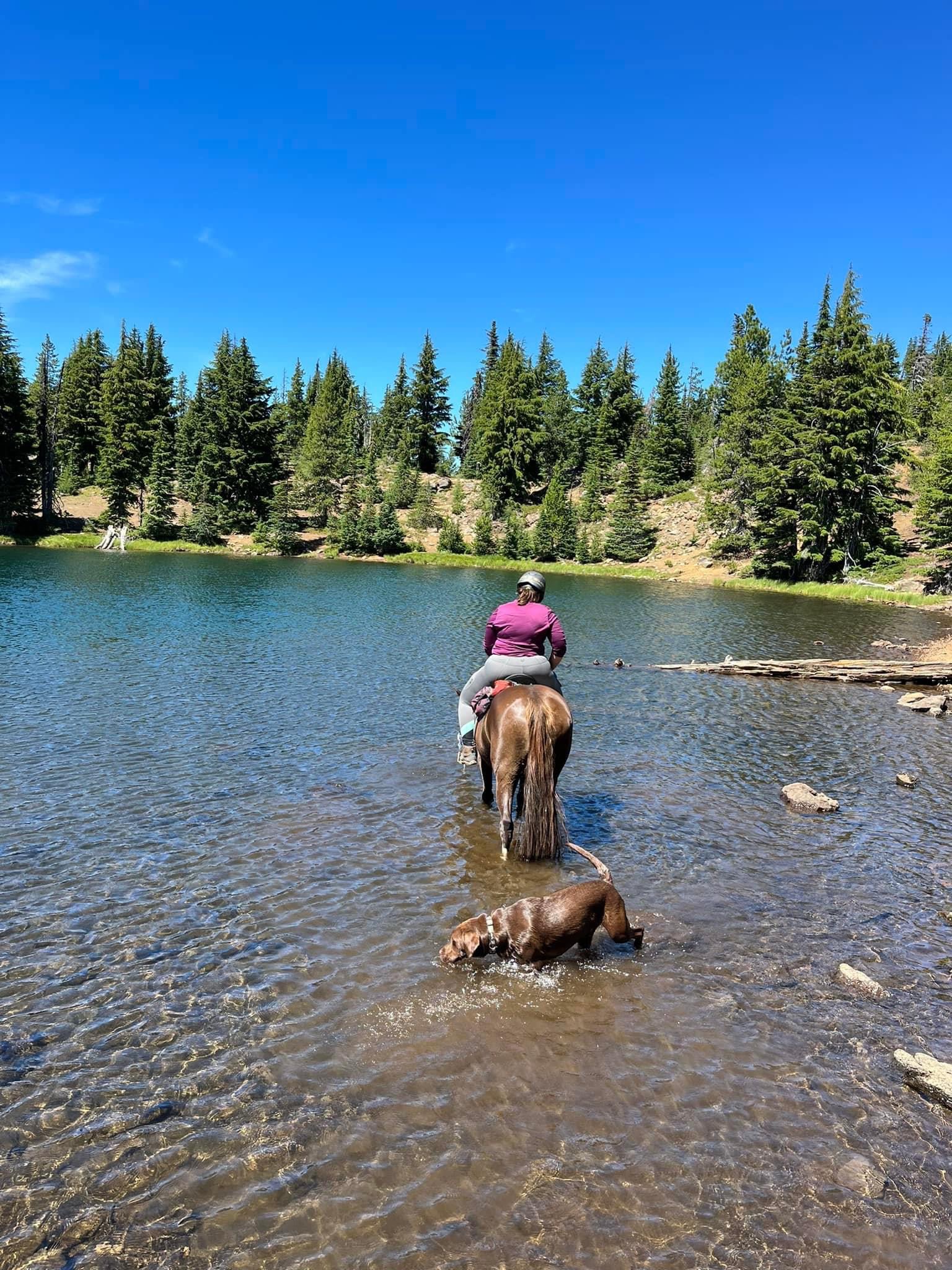 We managed to get through with some careful and slow detours, avoiding blowdowns and holes from burnt roots that can swallow a horse. I wouldn’t recommend this trail unless you know your horse and they can listen to you. I will mention it’s good Tarma tends to spook sideways and not a 180, as I usually stick with her. She decided one downed log was a bear and teleported sideways, and it wasn’t until we were trotting back down the trail again that my brain caught up and I shouted “WTF?” We took this last section slowly, giving Benny plenty of water and rest breaks. Thankfully I had my husband pick up four dog boots for him the week before, which were necessary for the long and rocky trails up there. He’s a tad sore and quite tired, but his paws are fine thanks to the boots.