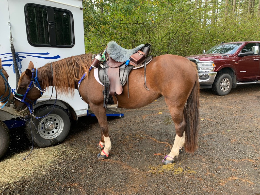 Headgear: We’re still in the process of finding what works best for Tarma in this realm. At the start of our first endurance ride last October, she reared before we even made it out of camp (I dismounted like I meant to do that!), then dumped me into some blackberry bushes about two miles later (lots of factors into this but different headgear with a tiny bit more whoa now would have helped). 90% of the time the cross under side pull does us just fine, but there are a few situations we’ll need something different for. During arena rides when I ask her to bend she doesn’t know what I’m asking, the cross under just isn’t clear enough. Most endurance riders will actually ride with a bit or some type of hackamore the first loop of a ride, as the horse you have at home during regular training rides is not always the horse you tack up on ride morning. There are a lot of emotions when the trail opens, so part of it is relationship building and knowing your horse and planning well, but I’d appreciate a bit less of “please ma’am slow down now” of the cross under and “Whoa Nelly” of something more direct (but not painful of course). I have a mechanical hackamore a friend gave me to try just for that circumstance, so we’ll see what Tarma thinks of it. For my own head, I recently parted ways with my third Troxel, which for some reason didn’t fit at all, to a brand new (and so much more comfortable!) OneK with MIPS helmet. It might be a bit hot in the summer, but I’ll just carry an extra water bottle to dump on my head.
