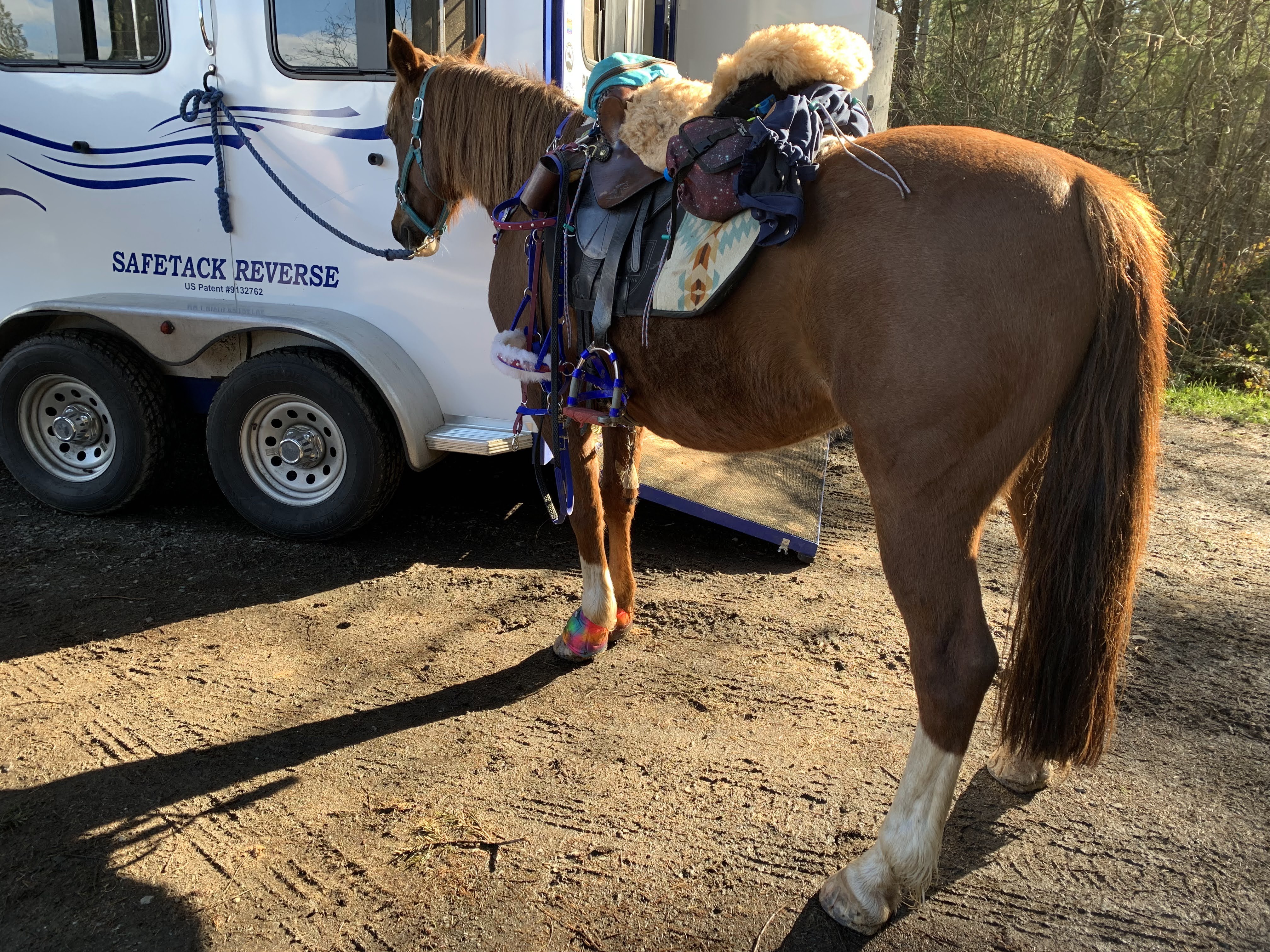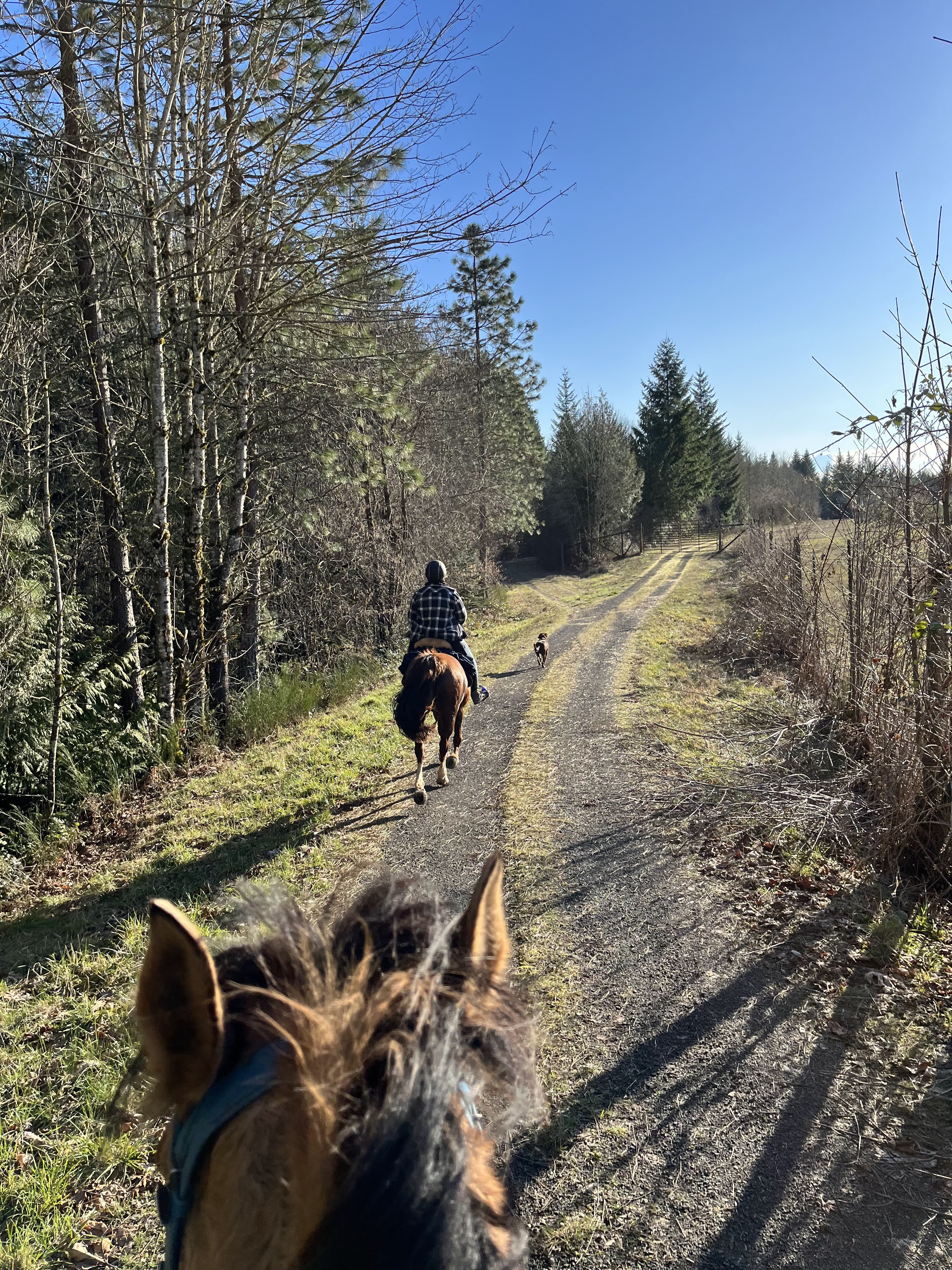 - Feet: Our farrier can get the Octo composite shoes reset, and they stay on this time (he used a spray on quick dry accelerator on the hoof before the glue and they’ve all come off, so he’s trying again with a new set of shoes for us). For the few miles the shoes were all on, Tarma was absolutely flying down the logging road, chunky gravel be damned. It was exactly the kind of beautiful, mostly contained trot of hers that I’m addicted to, and just want to let her go for miles and miles and miles.