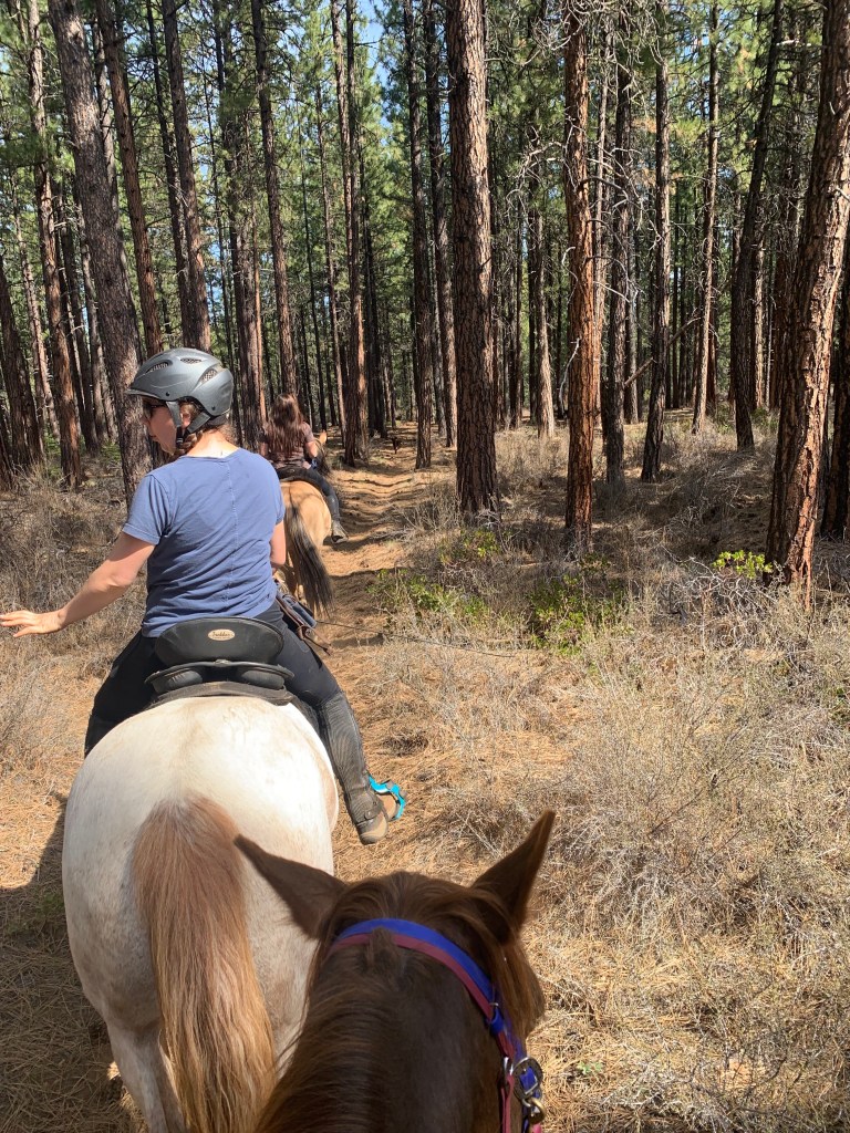 The horse related highlight of that camping trip was a short evening ride the day we arrived, a friend I used to catch ride with went out with us with her amazing gelding she’s brought through so much (his mule buddy refused to go out with us as they’d already ridden that day). There were non-stinging pollinator bees at several points along the trail, and I discovered Tarma really HATES these. She was shivering and stomping, twitchy and barely held to the walk. If I had so much as thought “trot” we would have been bolting out of there. Tarma of two years ago may well have bolted, with or without me. Tarma of today held herself together and told me, quite clearly, that we were not going to linger but she wouldn’t leave without me, and we managed to get through the bees without dying, twice. As soon as we were passed those areas she calmed down (read, not slowed down but at least went fast in a calmer frame of mind).