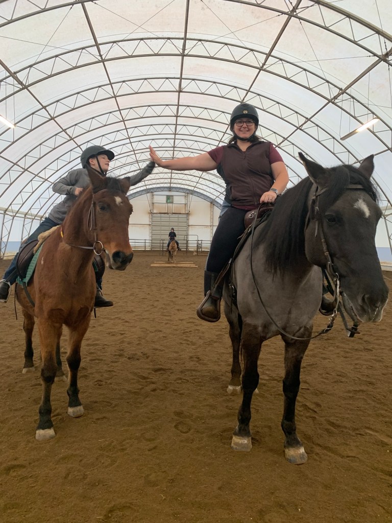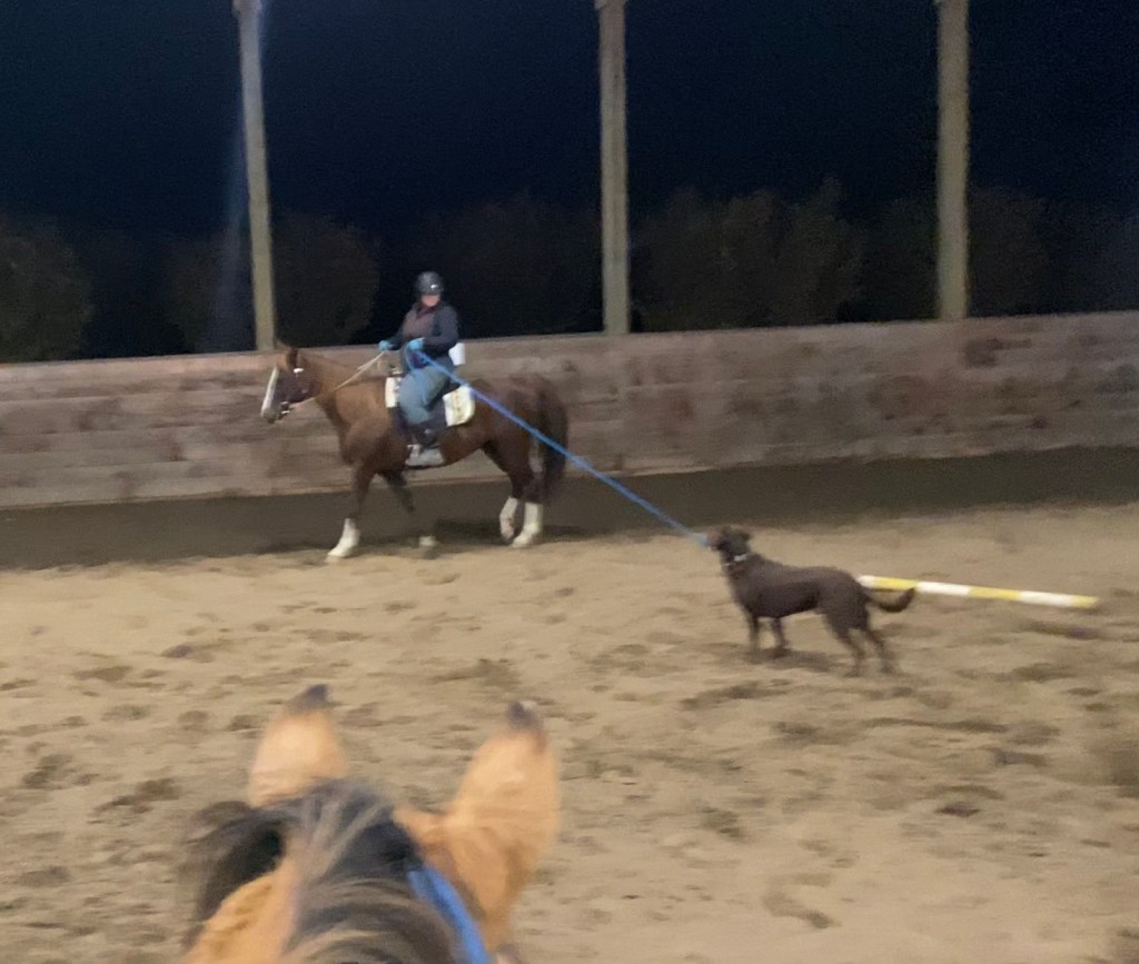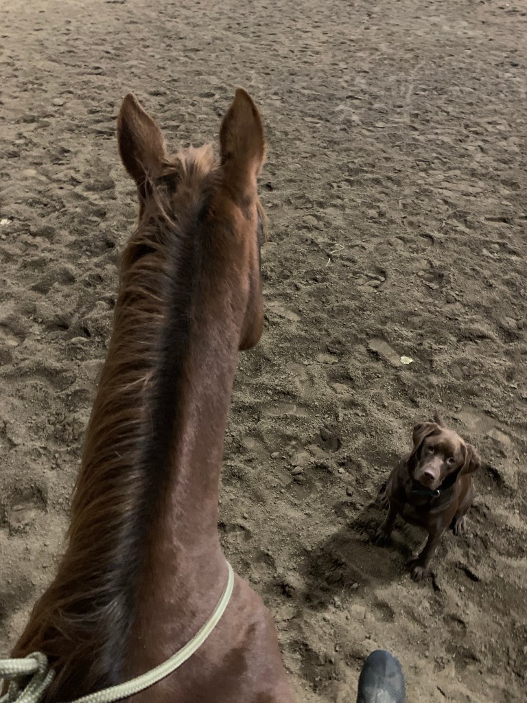 On Saturdays I’m bouncing between hauling Tarma up to Summerglen, and riding her in the busy arena while Kade takes a lesson a Scout, and trying out things with the much more finished Tesoro. He has a beautiful, self balanced canter and avoids running in to walls, even when I’m crooked. I hadn’t realized how anxious Tarma has made me about cantering in the arena until I was able to ride Tesoro. Several folks at my barn ride or work their horses on Tuesdays and Thursdays, so I’ve joined that group. Yesterday I towed kid and dog along a bit early, and we all had a blast. Cody was awesome for Kade, and I was able to work Tarma through some stickiness without being confrontational. She gets concerned whenever HER boy is on another horse. This gives us a chance to look at something besides our screens, but also builds in a space where Kade and I can have some critical discussions. It’s funny how many important life conversations happen in a vehicle.