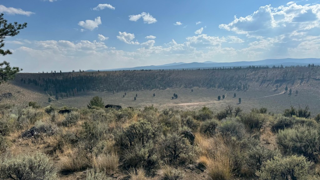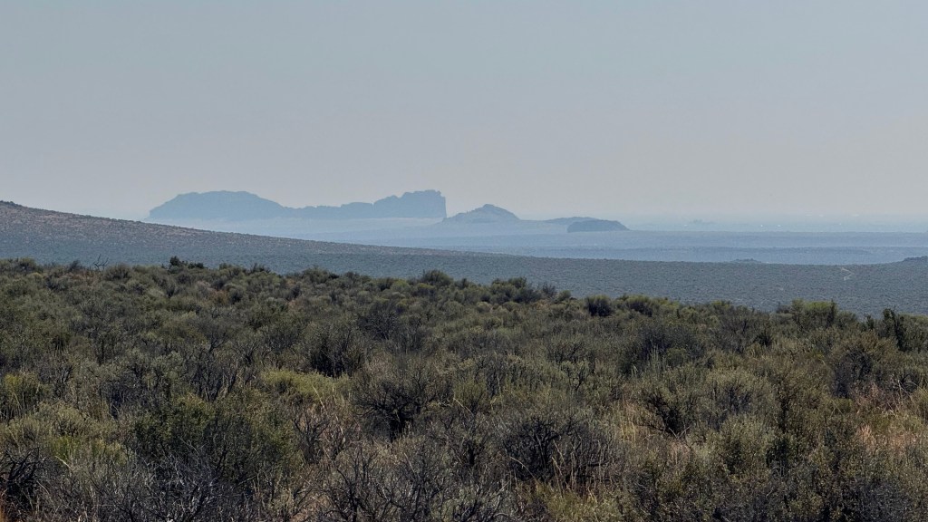 She did manage to spend the 45 minute second hold (again, only 30 were required but I wanted her to eat and we had it to spare) mostly eating, so I was happier. We cantered out and around the back of Hole in the Ground, only this time we had to climb it. I could feel her start to flag a bit, she was marching but not trotting up it so I busted out in song as we could see forever and were basically alone. She clearly didn’t eat enough in the morning and I think the cantering took a bit more out of her than I expected, because once we marched up Hole in the Ground, she declared she was absolutely starving. She sucked down water at the tank at the top and told me to get off, so I did and we meandered around the rim, stopping to eat every two feet or so. Even though we had plenty of time I was ready to call it a day and we had a measly three miles to camp, so I eventually hopped back on and asked for a trot…which I got for 50 yards and then she returned to eat, take a few steps, grab a bite, take a few steps, contemplate the view. Usually we hit a mutual bonk around 35 miles, today we made it to mile 44 before she flagged. Convincing her to keep walking, that camp was juuuuust over there and then she could eat all night took a few minutes, but eventually she sighed and agreed to keep chugging down off the hill.
