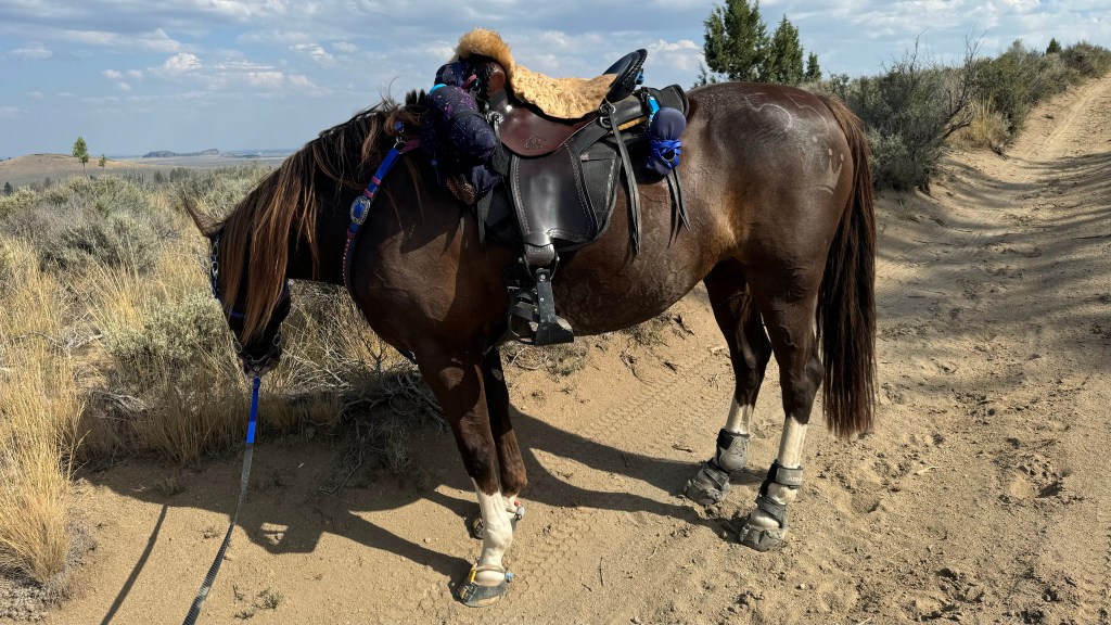 She passed her completion exam with flying colors, including compliments from the head vet himself (even if I did have Kade trot her out for me). I had managed myself pretty well all day, and while I was functional my stomach was a bit delicate, enough that if I didn’t make any sudden moves or bad food choices I was fine. I slept much better as it was warmer, and Tarma was a happy camper all night. The next day Rachel offered for Kade to ride Cody with me so Tarma could get a leg stretching ride, but that required me to get back on the horse. Instead I opted for something I didn’t think was possible a year ago: Kade rode Tarma without me, following Rachel and Cody. I didn’t burst with pride, but that’s cause my ribs hurt from all the cantering.