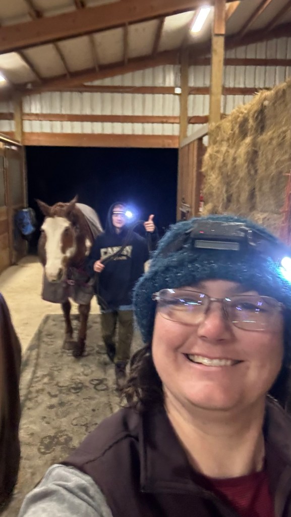 I was able to rip through several books (Wrong Lady Meets Lord Right, Passions in Death, Service Mode, Birding with Benefits, How to Plot a Payback, and Welcome to Pawnee), keep the Labradork gainfully occupied, enjoy time asaddle with both good friends and my offspring, and set the scaffolding for better fitness habits to hang on. Some deep cleaning was tackled, some old clothes and tack moved along, a few new restaurants and food carts sampled. I got caught up on tracking various things, such as 2024 rides and miles (550 miles over 109 rides), miles on the rig and trailer tires in 2024 (6,250; 12,000 miles on those trailer tires in two years, might be getting close to replacement time…), and overall progress on myself and my horsemanship, and my partnership with Tarma.
