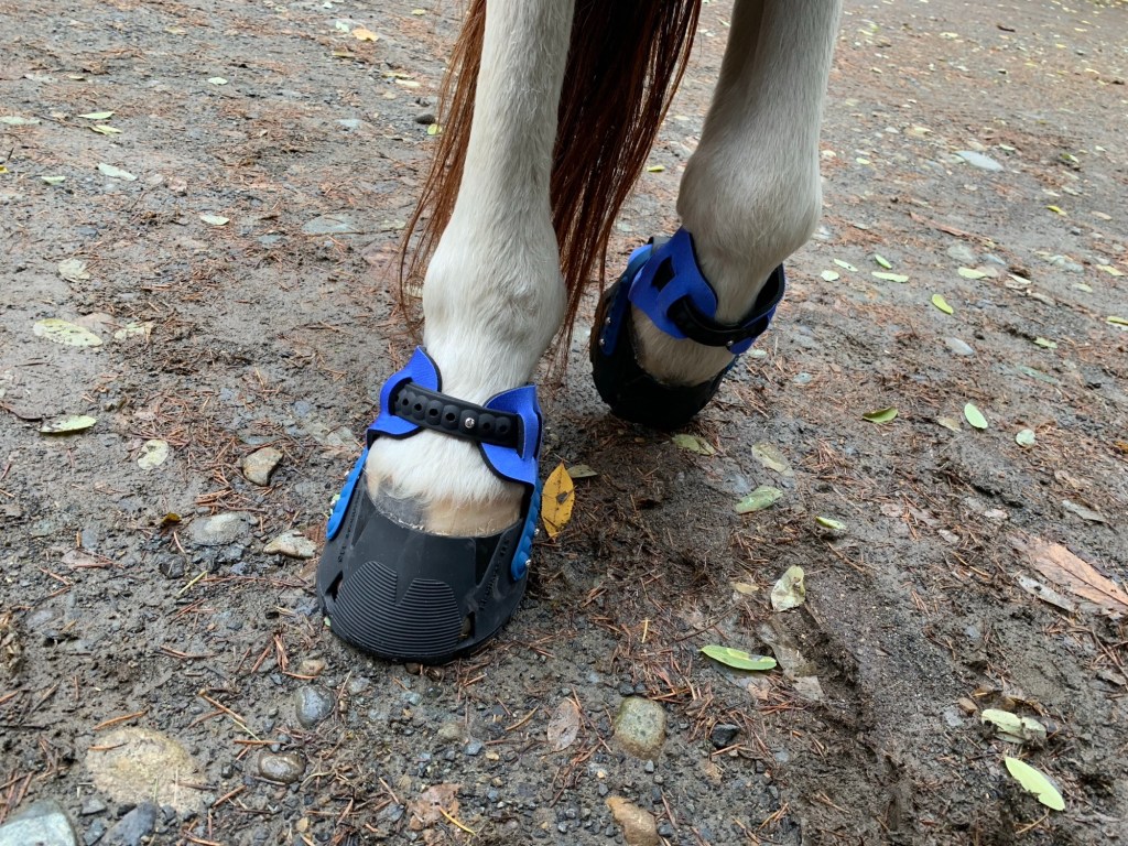 - When I first brought her home, her feet were not in the best shape and we had to pry them off the ground to get her trimmed. I tried Renegades as they had worked for my last gelding, and promptly gave up on them when I lost one over a cliff (before I had Benny to fetch flying boots for me!). This was years ago and I haven’t tried them again even though plenty of endurance folks have good luck with them, because they are on the clunkier side, and I’m afraid they’ll just fly off again or rub, though I may be willing to try them again with a professional fitter involved.