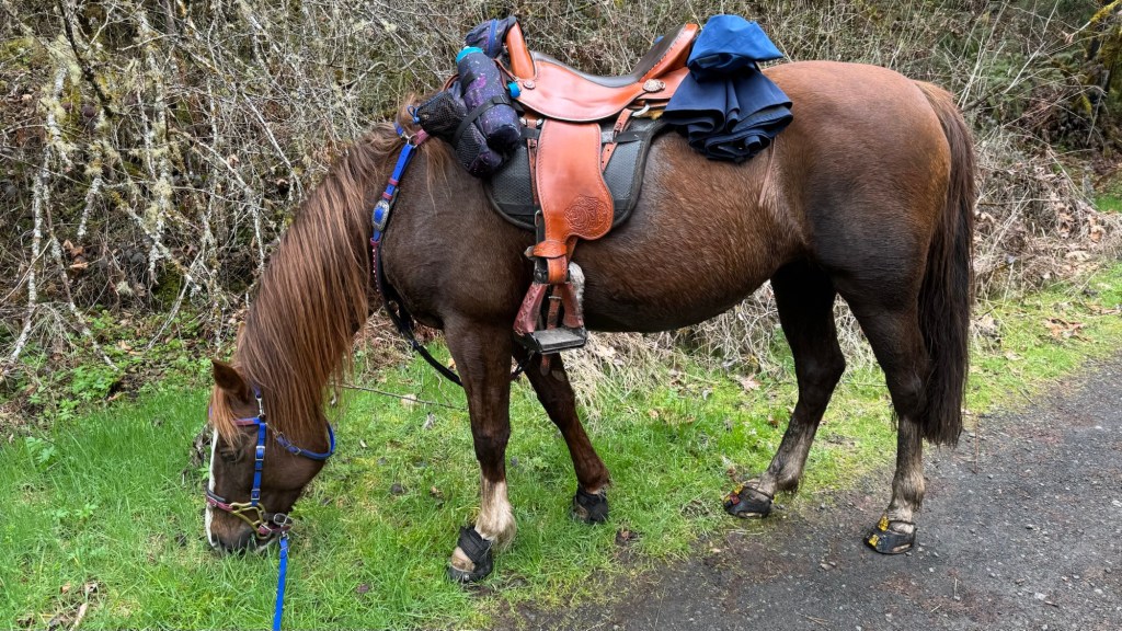 - No nails and no metal: Tarma’s never had metal shoes or nails, and unless I’m down to my last option I’m aiming to keep it that way. My reasons are many; nails can mess up a good foot and if applied incorrectly, can seriously lame her; ripping them out can be a ride ender and cause a hazard until they are found in the pasture; they rip up pastures more than bare hooves do; it’s a lot harder to maintain hoof health in metal, and they absorb a lot less concussion than composites or boots.