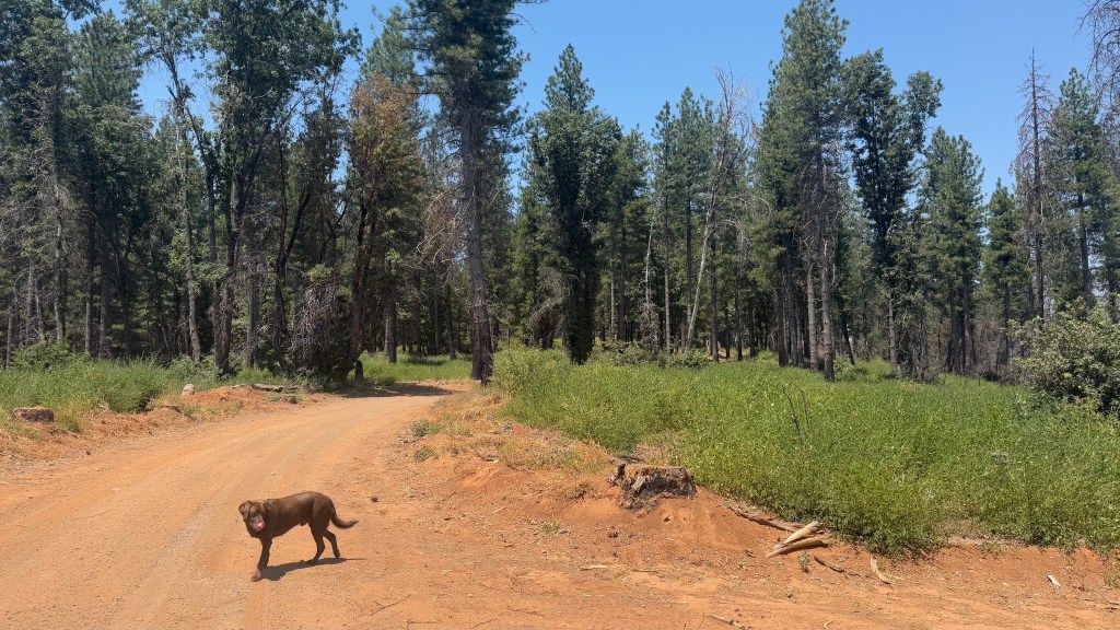 Once we were cleaned up and well rested, we left the trailer at the hotel and headed up the hill to play tourist in Auburn. We found a wonderful breakfast place that had a patio so Benny could join us (and they brought out a water bowl with ice for him, thank you Katrina’s Cafe!) We wandered around downtown after breakfast and a stop at the AERC office, grabbing smoothies and browsing galleries and admiring how deep endurance of all kinds runs in Auburn. We hit up a local volunteer run tack store called Horse’s Honor, where I had a delightful time finding some new goodies including several endurance books, and Echo Valley Ranch, the official feed store for Tevis (whose owner rides Tevis!) I had originally planned to drive and view the areas I was set to be staged at as horse transport, but skipped that and we headed over Donner Pass to visit Robie Park.