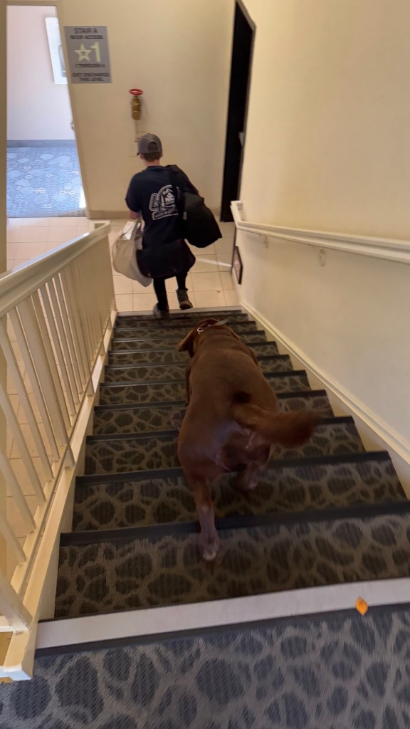 I was able to catch up on a bit of the post race news (including the Reynolds crossing under the banner hand in hand, and the finish of Tamara the Sweaty Equestrian!) before we had to blitz home. It was over 100* the entire way home, so I had to baby the truck a bit to avoid overheating on the big hills. I kept a bowl of water out and a USB fan on Benny, and we stopped a few times to let him jump in some rivers to stretch his legs. I caught up on all the “Culture Study” podcasts I’d been saving up, and we only got cut off by one trucker.